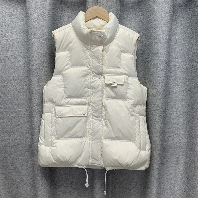 Winter Autumn Women's Stand Collar Fashion Solid Color Sleeveless Causal Warm Vest Jacket Ladies Loose Chic White Duck Down Coat