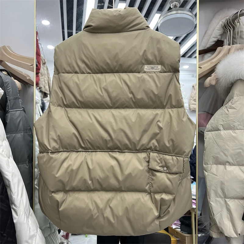 Winter Autumn Fashion Women's Stand Collar Solid Color Sleeveless Causal Warm Vest Jacket Ladies Chic White Duck Down Coat