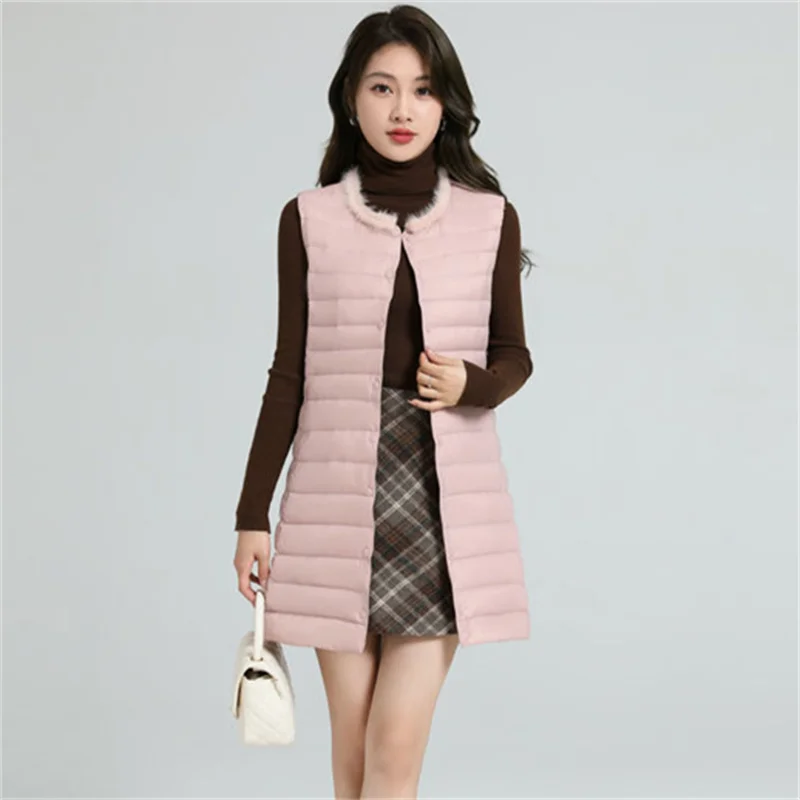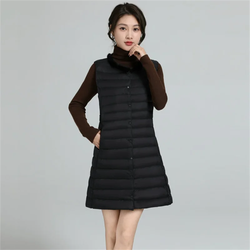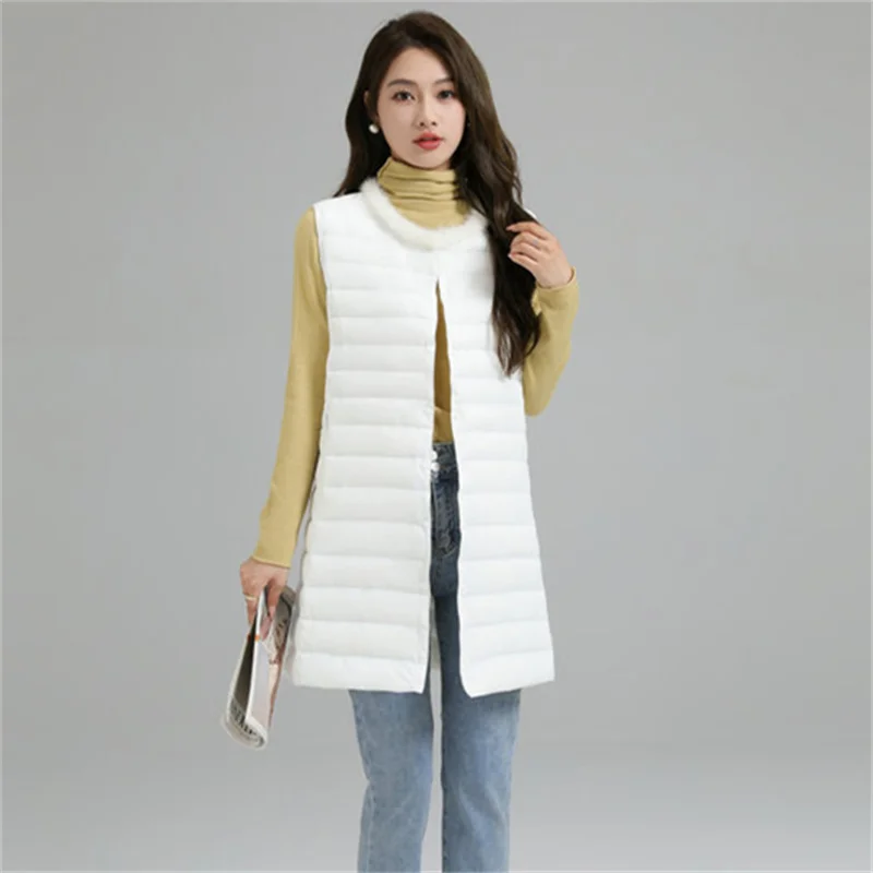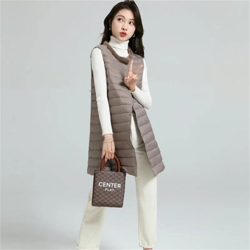 Winter Women Mink Collar Down Waistcoat Jacket Parkas Ultra Light Thin White Duck Down Vest Coat Lady Warm Sleeveless Long Tank