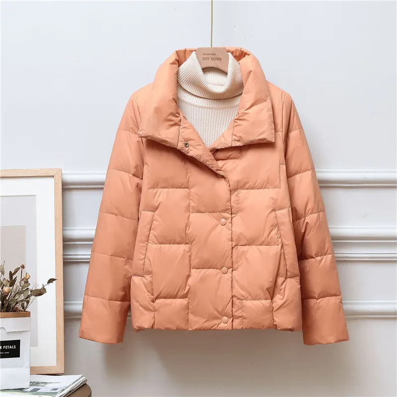 2022 Autumn Winter Down Coat Women Light Thin White Duck Down Jacket Parkas Ladies Single-Breasted Stand Collar Short Outwears