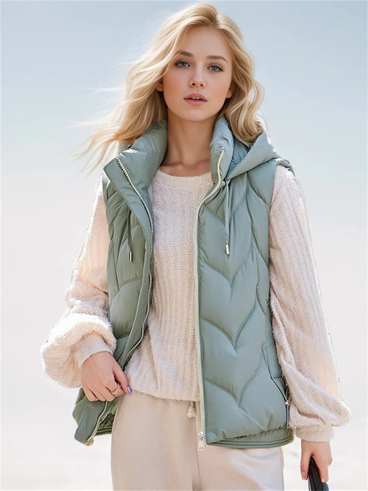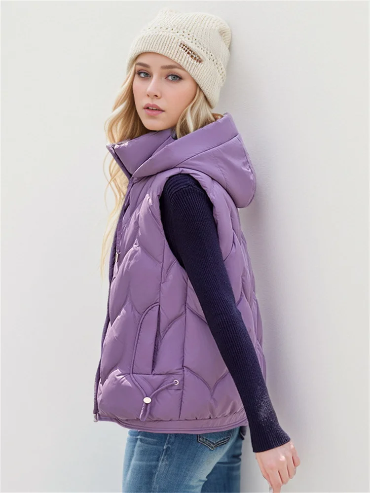 Women's Puffer Cotton Vest Jacket Fall-Winter 2024 New Stylish Hooded Vest Lightweight And Warm Casual Horse Clip Jacket
