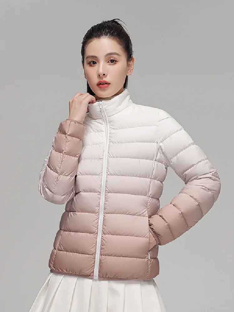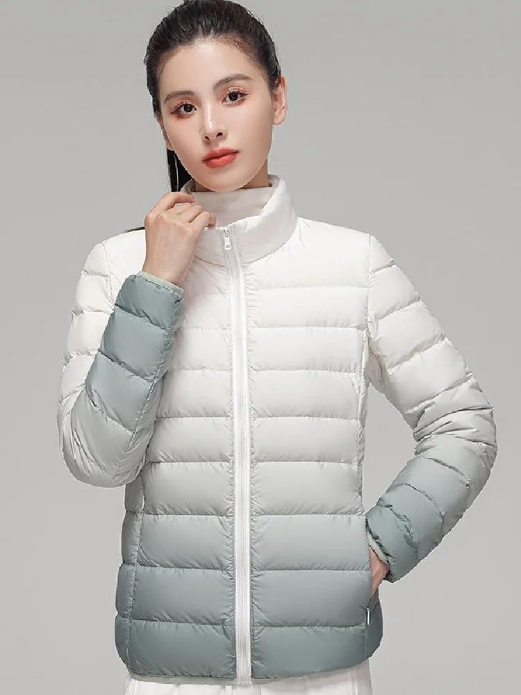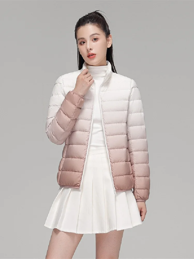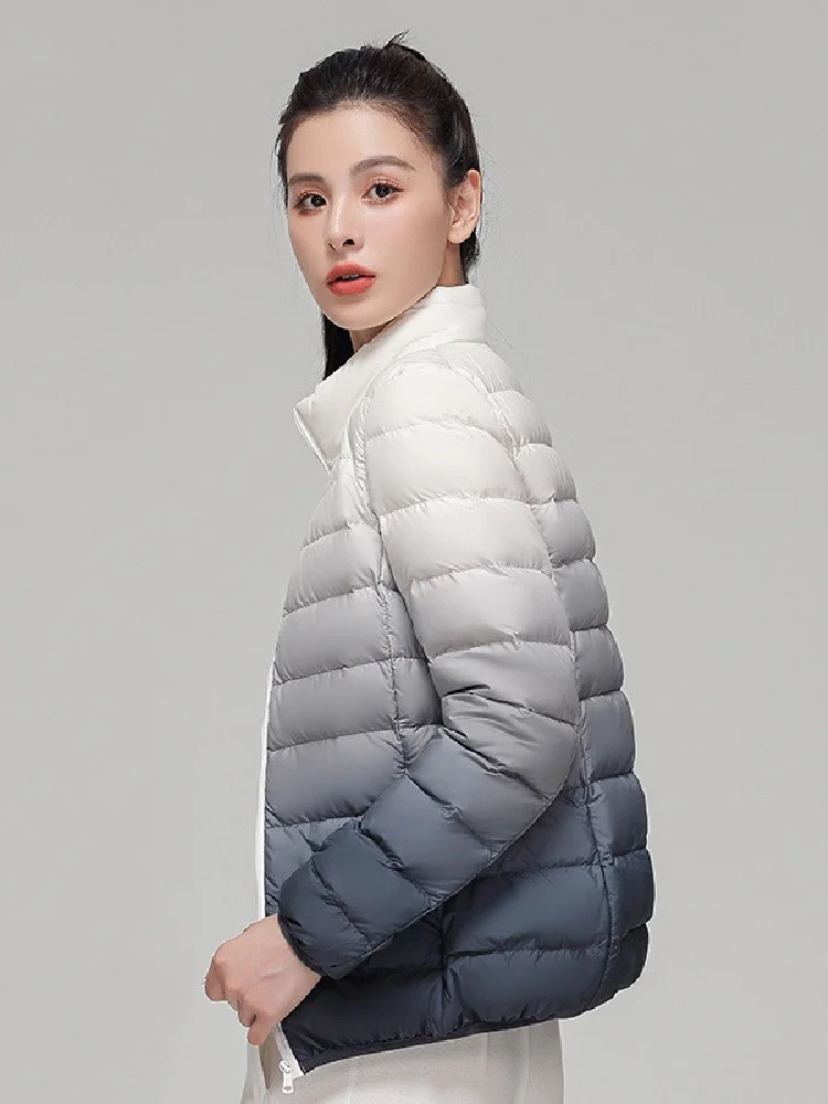 Women Ultra Lightweight Down Jackets 2023 New Autumn/Winter Female Fashion Gradient Slin Fit Short Stand Collar Keep Warm Coats