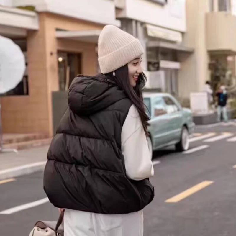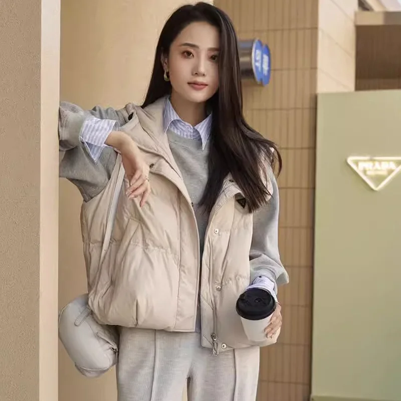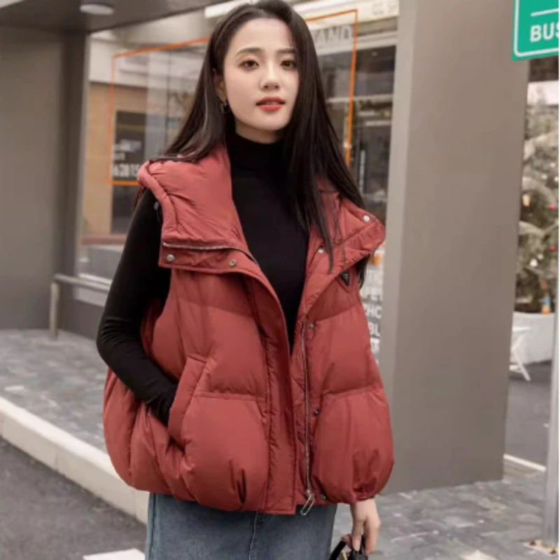 Women's Monochromatic Down Vest Jacket, Casual Parka, Warm Vest, Autumn and Winter Tops, New, 2024