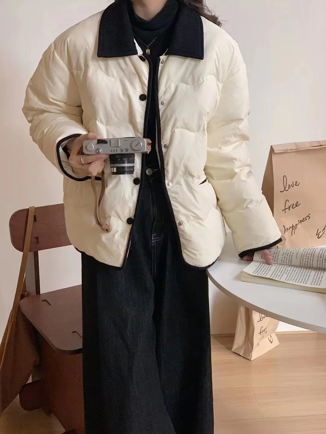 2024 Winter New Fashion Korean High End White Duck Down Jacket for Women's Casual Loose Short Lightweight Warm Coat F168