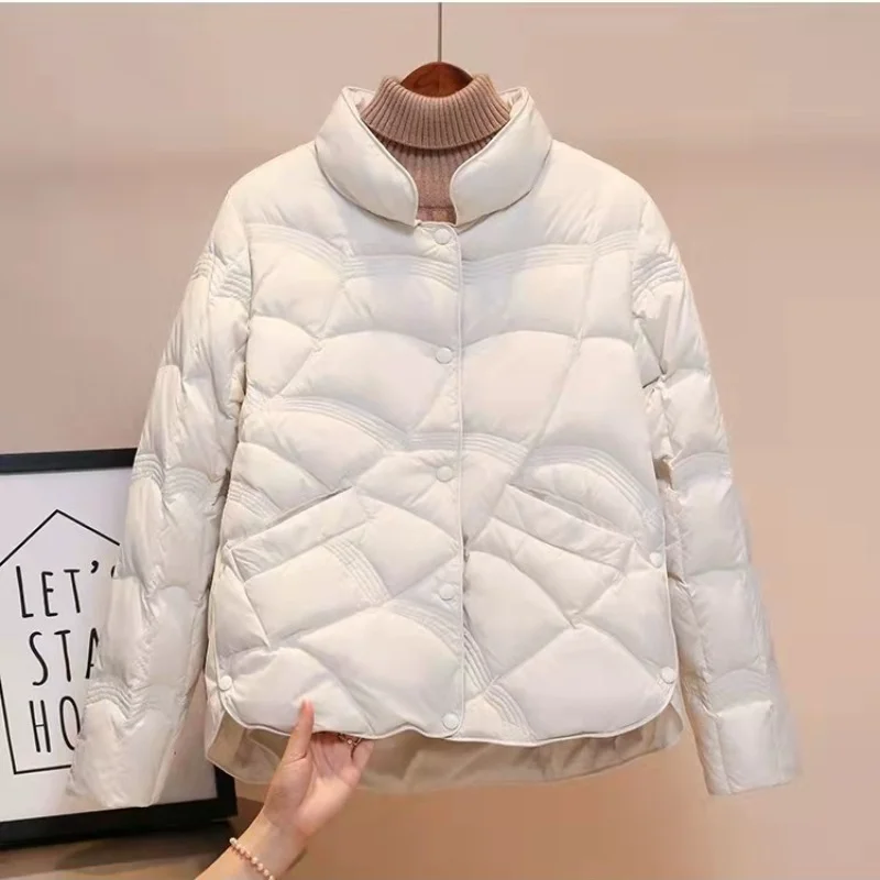 Autumn Outwear Women 90% White Duck Down Jacket Stand Collar Solid Llight Thin Winter Windproof Coat Female Casual Puffer Jacket