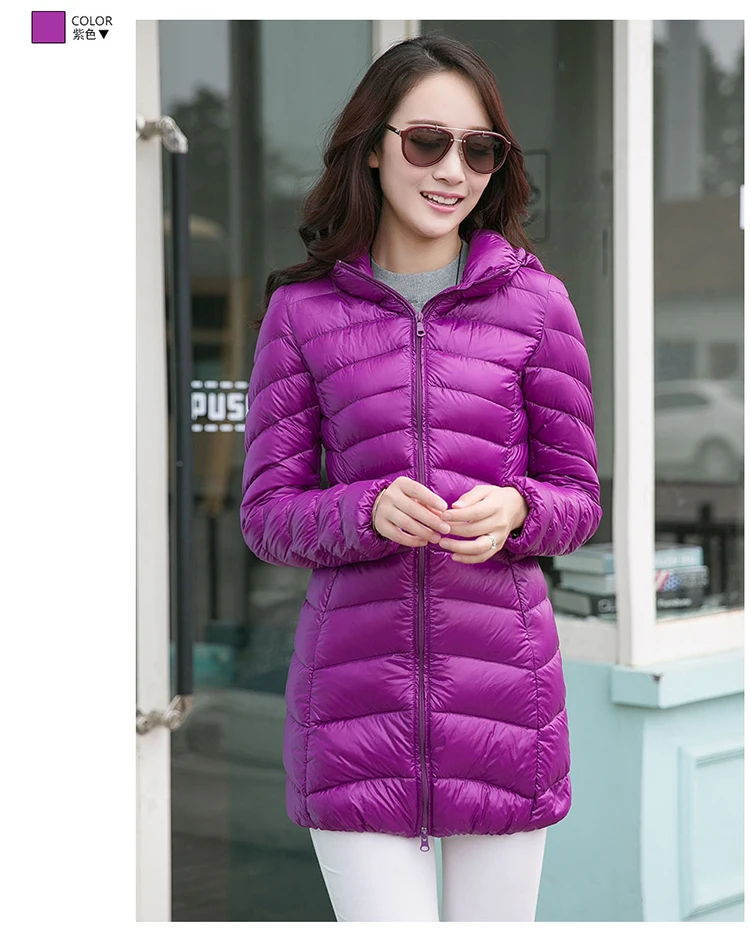 Winter Long Down Jacket Women 90% Duck Down Coat Female Ultra-light Packable Parka Elegant Outwear Hooded Jackets Ladies JK-639