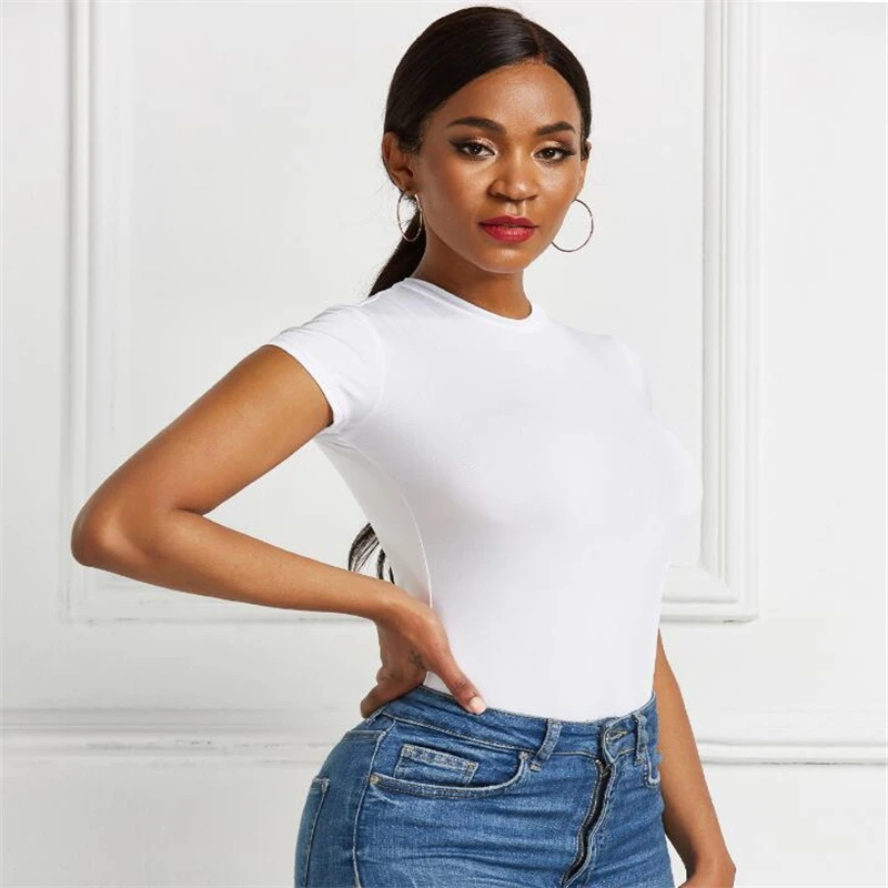 Sexy One Piece Bodycon Bodysuit Short Sleeve O Neck Open Basic White Black Red Overalls Women Body Top Skinny Rompers Female