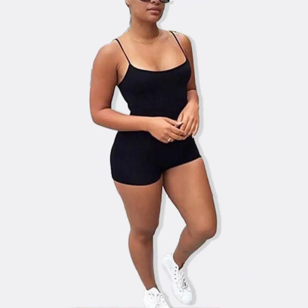 Jumpsuit Sexy Shorts Sleeveless Bodysuit Women Spaghetti Strap Spaghetti Straps Bodycon Sports Jumpsuit