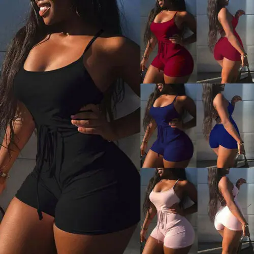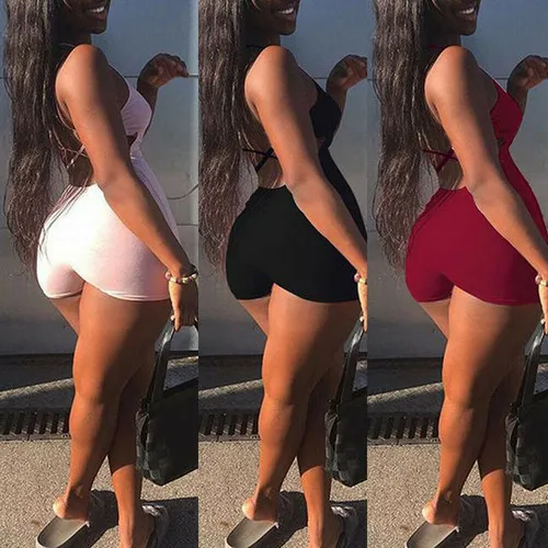 Women New Solid Romper Ladies Sexy Playsuit Sleeveless Backless Bodycon Black Short Summer Sport Wear Jumpsuit