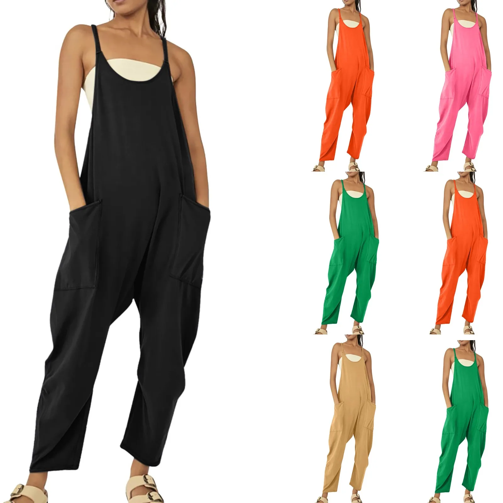Name | Women Strap Loose Jumpsuit Romper Boat Neck Sleeveless Playsuits Wide-Leg Trousers Solid Color Overalls Sport One Piece Romper |