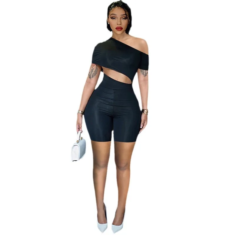 Summer fashion women's off-the-shoulder sexy jumpsuit stretch solid color women's jumpsuit