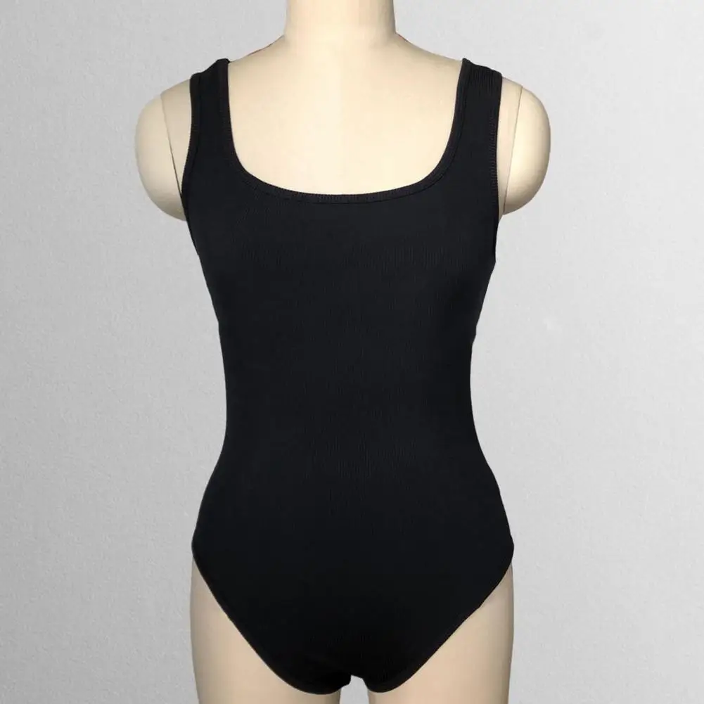 Sexy Women Bodysuit Square Neck Sleeveless with Crotch Button Closure Tight Waist Backless Playsuit monos para mujer