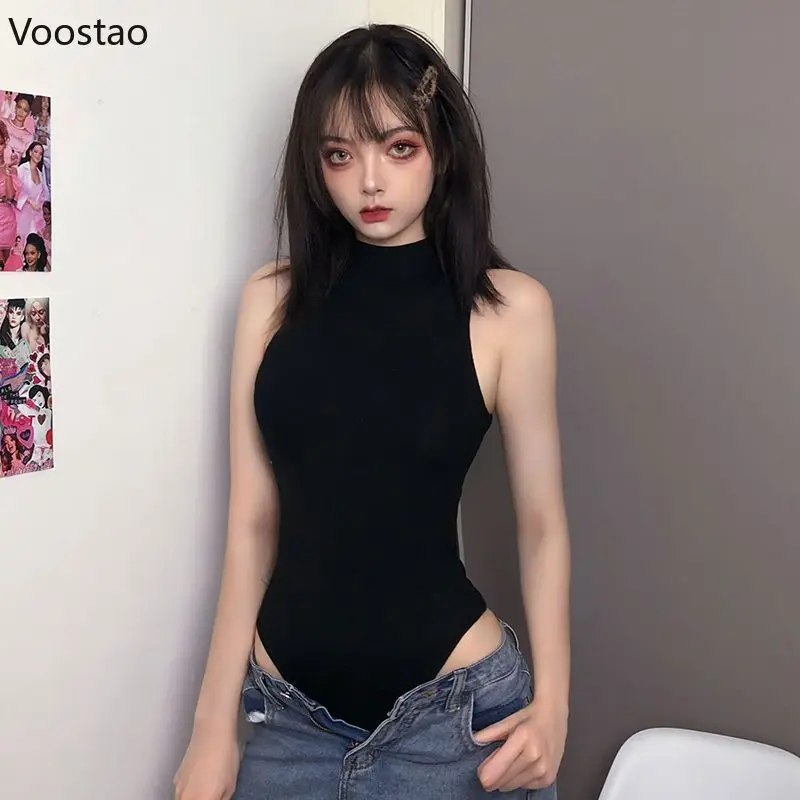 Vintage Harajuku Jumpsuits Fashion Dark Punk Sleeveless Tank Top Women Sexy Bodysuit Hottie Black Tights Slim All-Match Rompers