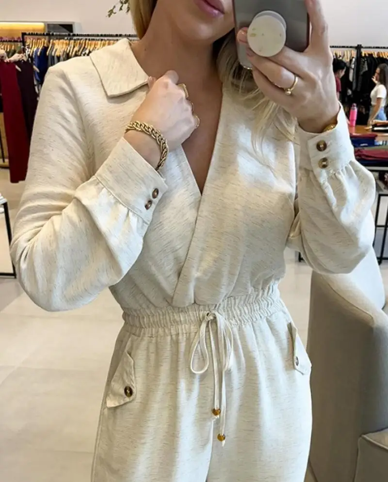Sporty Chic Elegant Women's Jumpsuit 2024 Autumn Casual Long Jumpsuit V-Neck Drawstring Pocket Daily Commuting Women's Jumpsuits