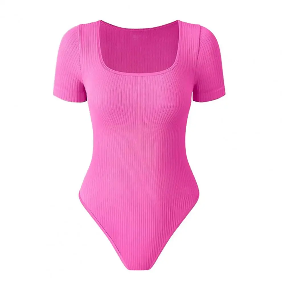 Short Sleeve Bodysuit Stylish Women's Square Neck Bodysuit with Tummy Control High Elasticity for Summer Fashion for Ladies