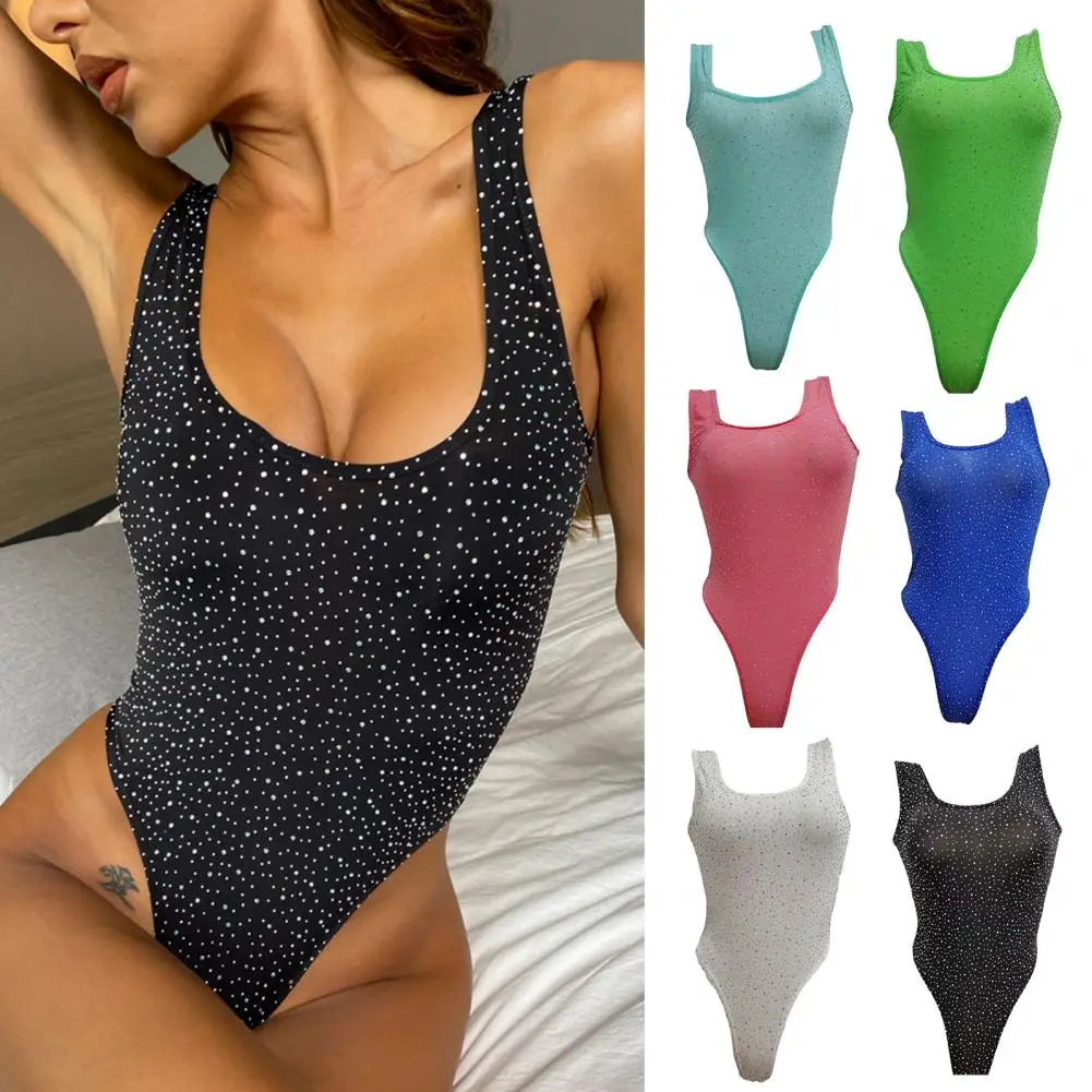 Lady Playsuit Sexy Tight Summer Bodysuit Slim Fit Playsuit One Size Solid Color Playsuit Women Garment