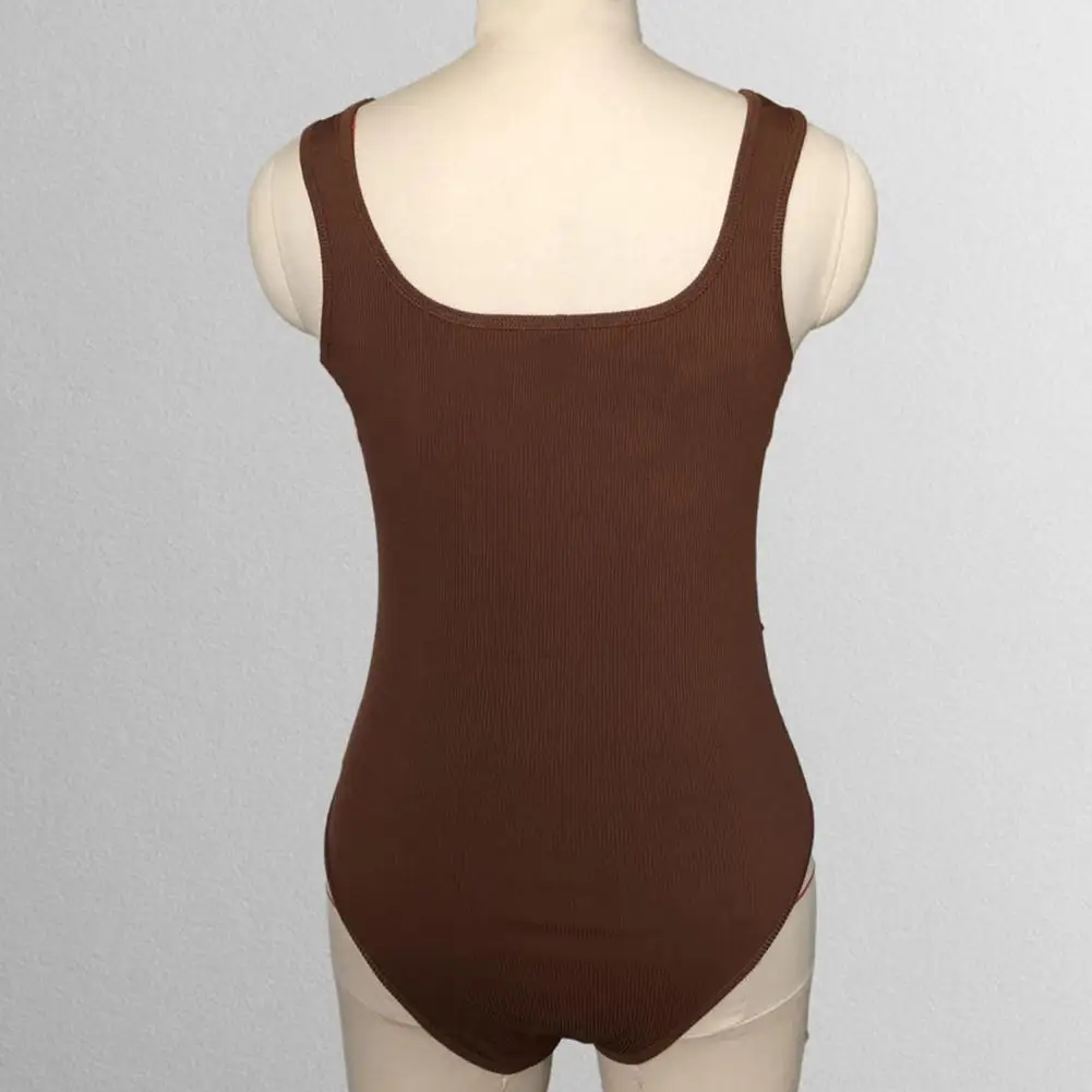 Square Neck Playsuit Elegant Square Neck Bodysuit for Women Backless Sexy Playsuit with Button Closure for Summer Outfits Opaque