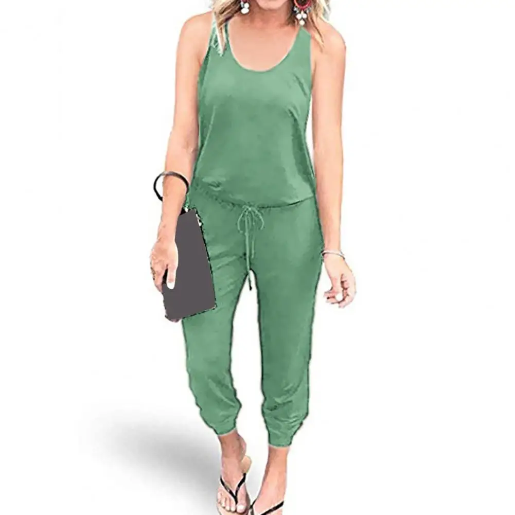 Women Autumn Jumpsuit Stylish Women's Sleeveless Drawstring Jumpsuit Loose Fit Elastic Waist Ankle Length for Casual Daily Wear