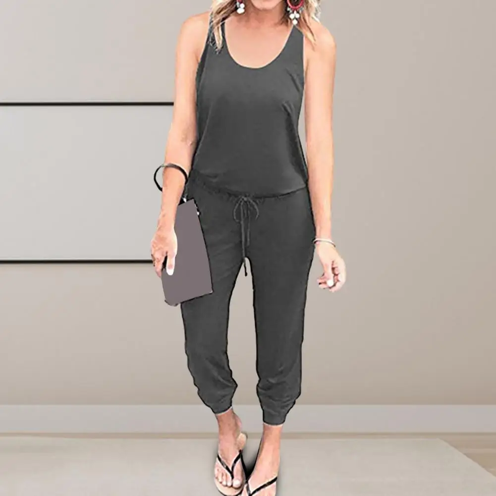 Summer Jumpsuit Stylish Women's Sleeveless Drawstring Jumpsuit Loose Fit Elastic Waist Ankle Length for Casual Daily Wear Spring