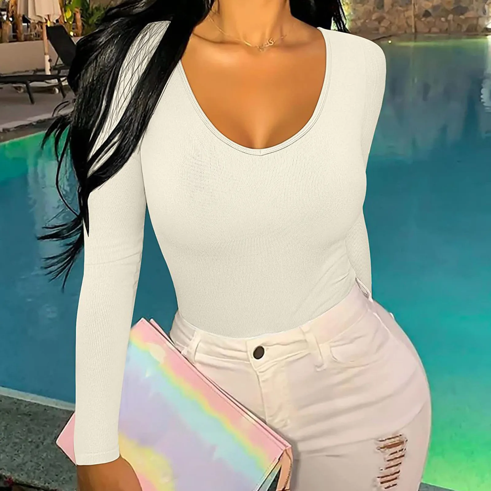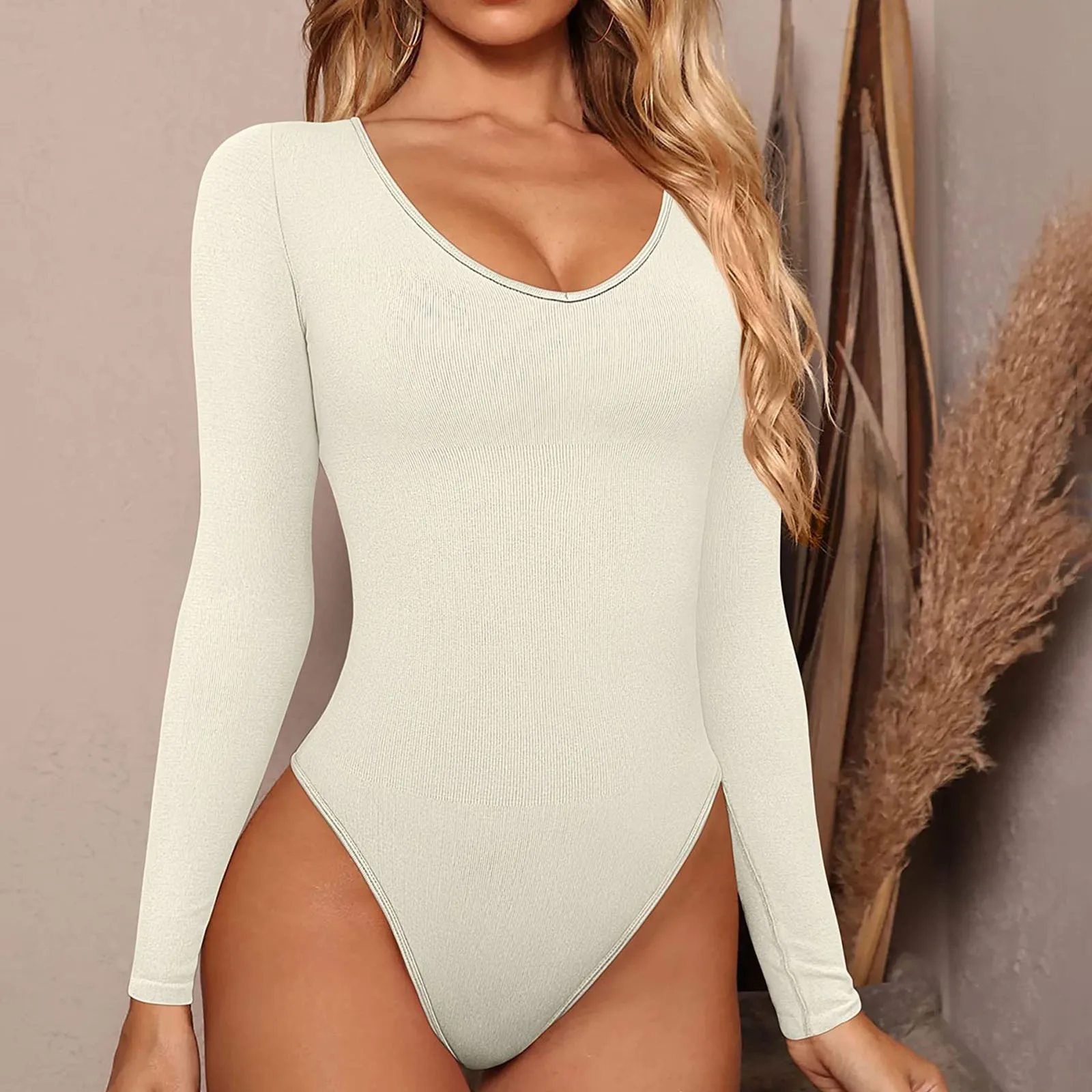 Women's Sexy Knitted Underwear Crew Neck Long Sleeve Leggings Slim Jumpsuit Bodysuit Top Solid Slim Fit Sexy Plus Size Jumpsuit