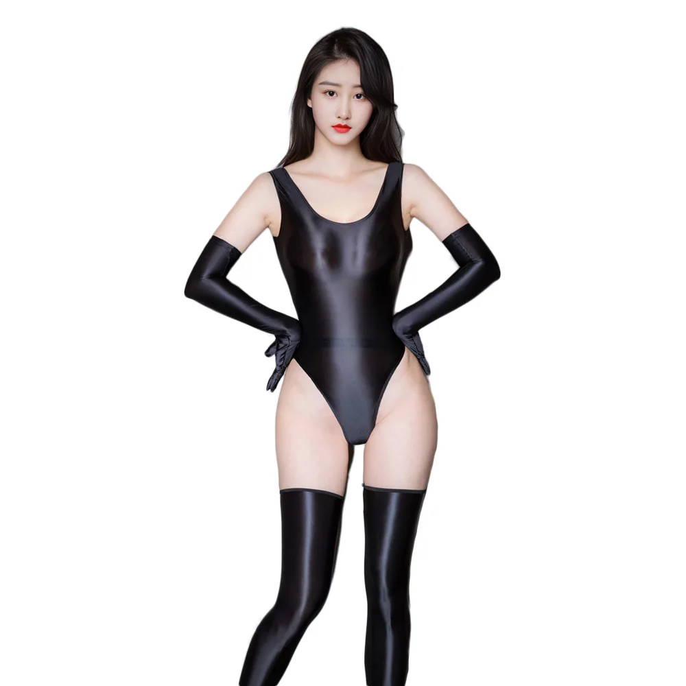 Sexy Women Candy Color Stain Smooth HIgh Cut Bodysuit Oil Glossy Shiny Elastic Tights Shapping Leotard Backlesss One Pieces