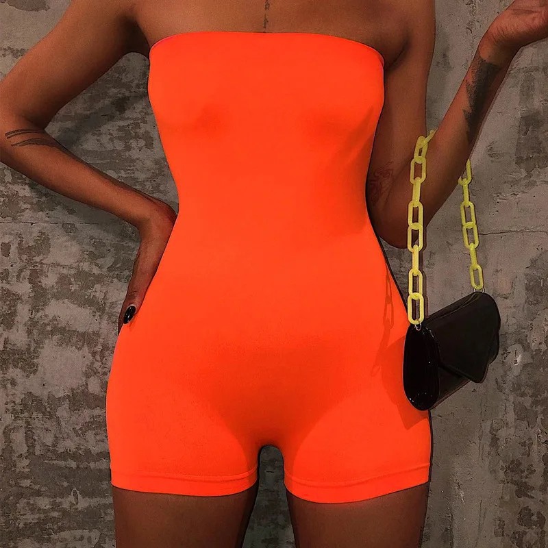 YUZHEXI neon sports playsuit y2k aesthetics Sexy bandeau short jumpsuit streetwear women summer strapless bodycon overalls