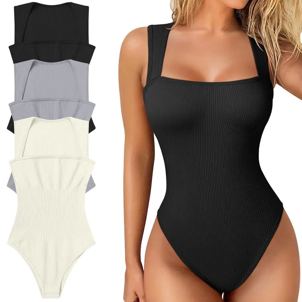 Soft Skinny Playsuit Summer Bodysuit Elegant Square Neck Bodysuit for Women Tummy Control Playsuit with High for Summer