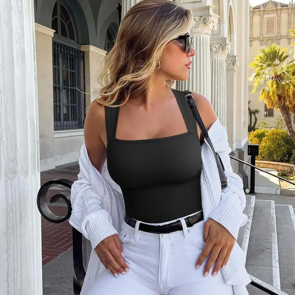 Elastic Bodysuit Elegant Square Neck Bodysuit for Women Tummy Control Playsuit with High Elasticity Breathable Fabric for Summer