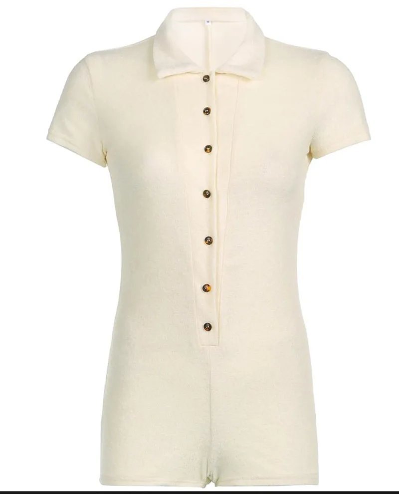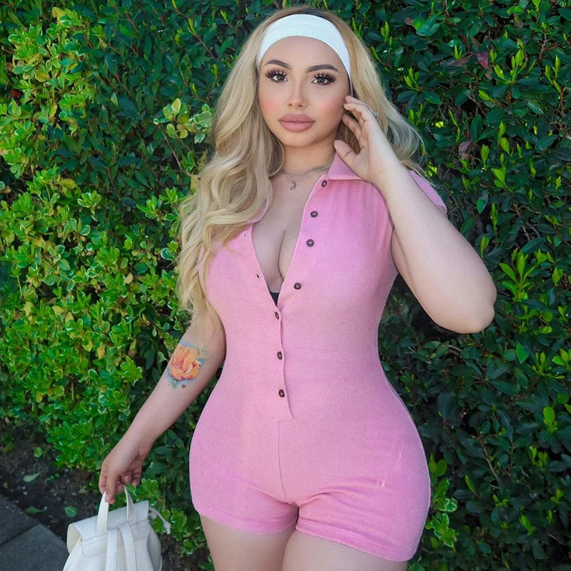 Fashion Cute Women's Playsuits Solid Color Short Romper Slim Fit Short Sleeve Lapel Neck Jumpsuits Summer Bodysuits Streetwear