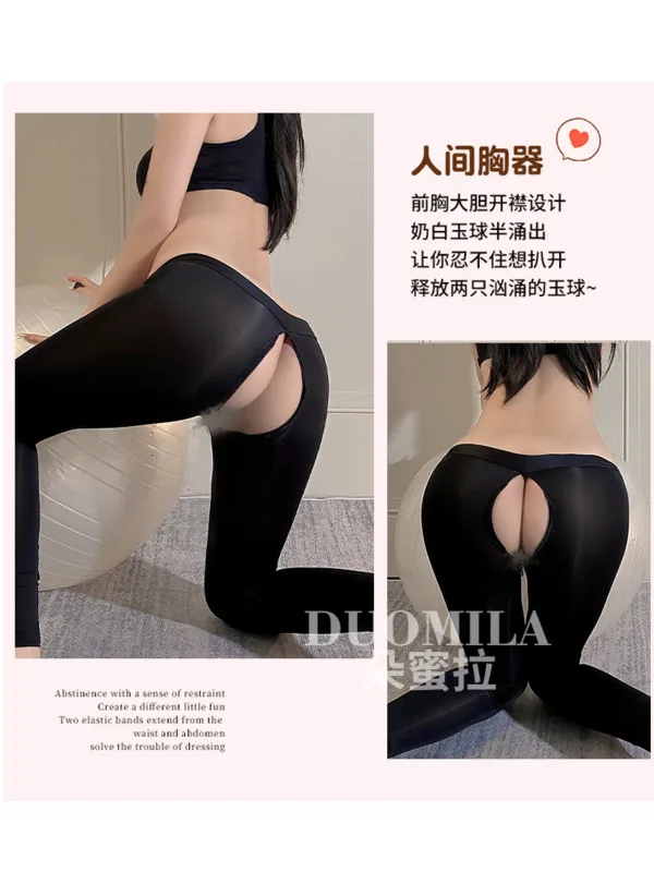 Fun lingerie uniform sexy one piece ice silk smooth zipper free crotch yoga pants Fun stockings Fun lingerie rompers women DA8F