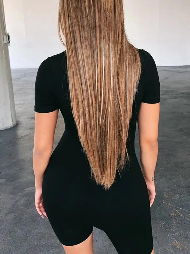 Zipper Bodysuit Strap Solid Bodycon Sexy Body Casual Basic y2k Summer Bodysuit Women Tops Short Sleeve Bodysuits Jumpsuit Slim