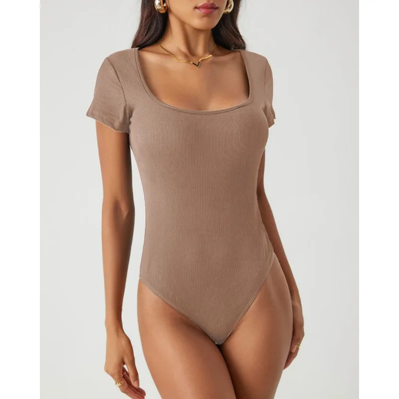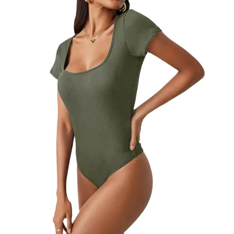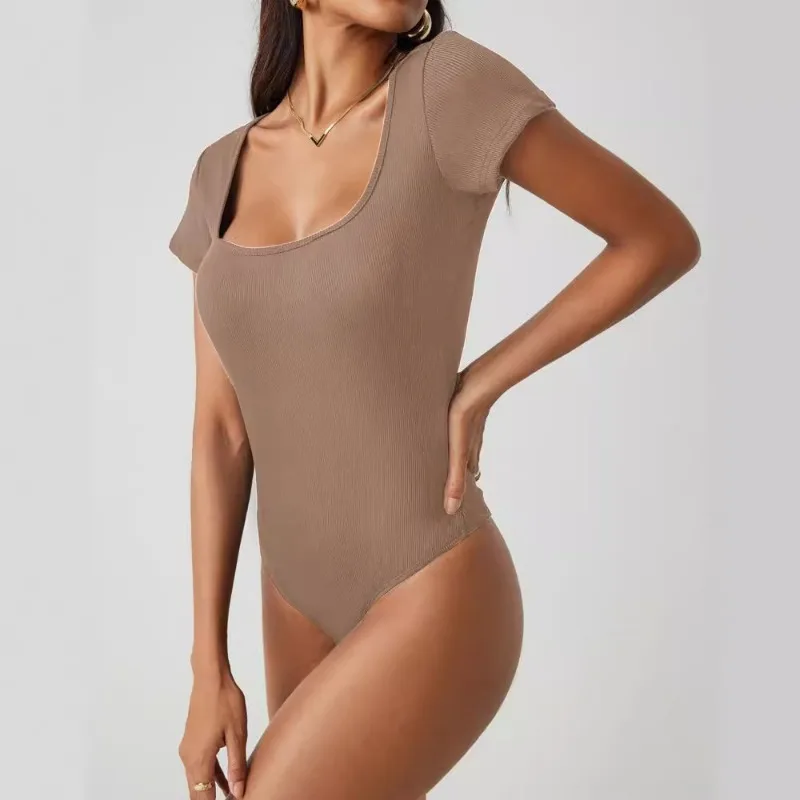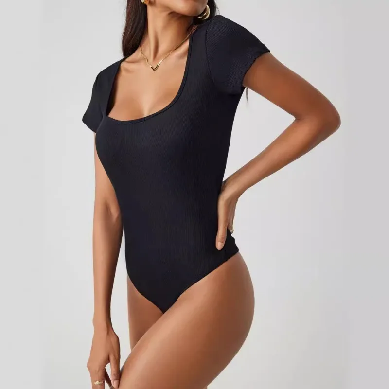 2024 Spring Summer New Women's Clothing Solid Color Short Sleeve Rib Fabric Slim Jumpsuit