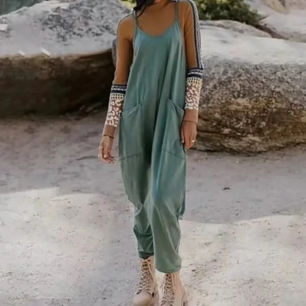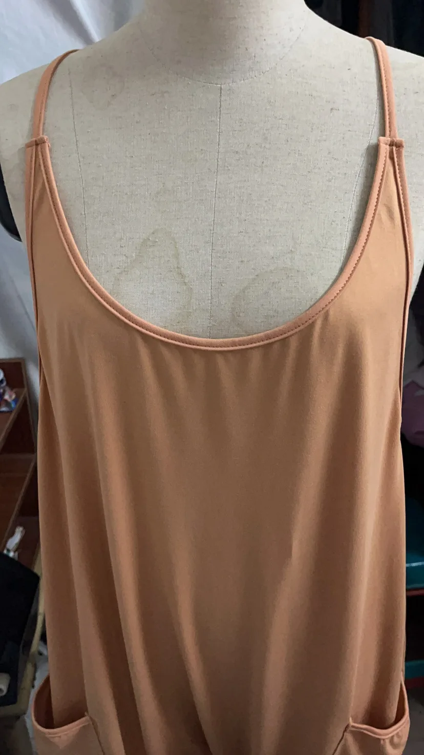 Womens Romper New Fashion Plain Color Cotton Knit High Stretch Large Patch Pocket Suspender Jumpsuit for Women