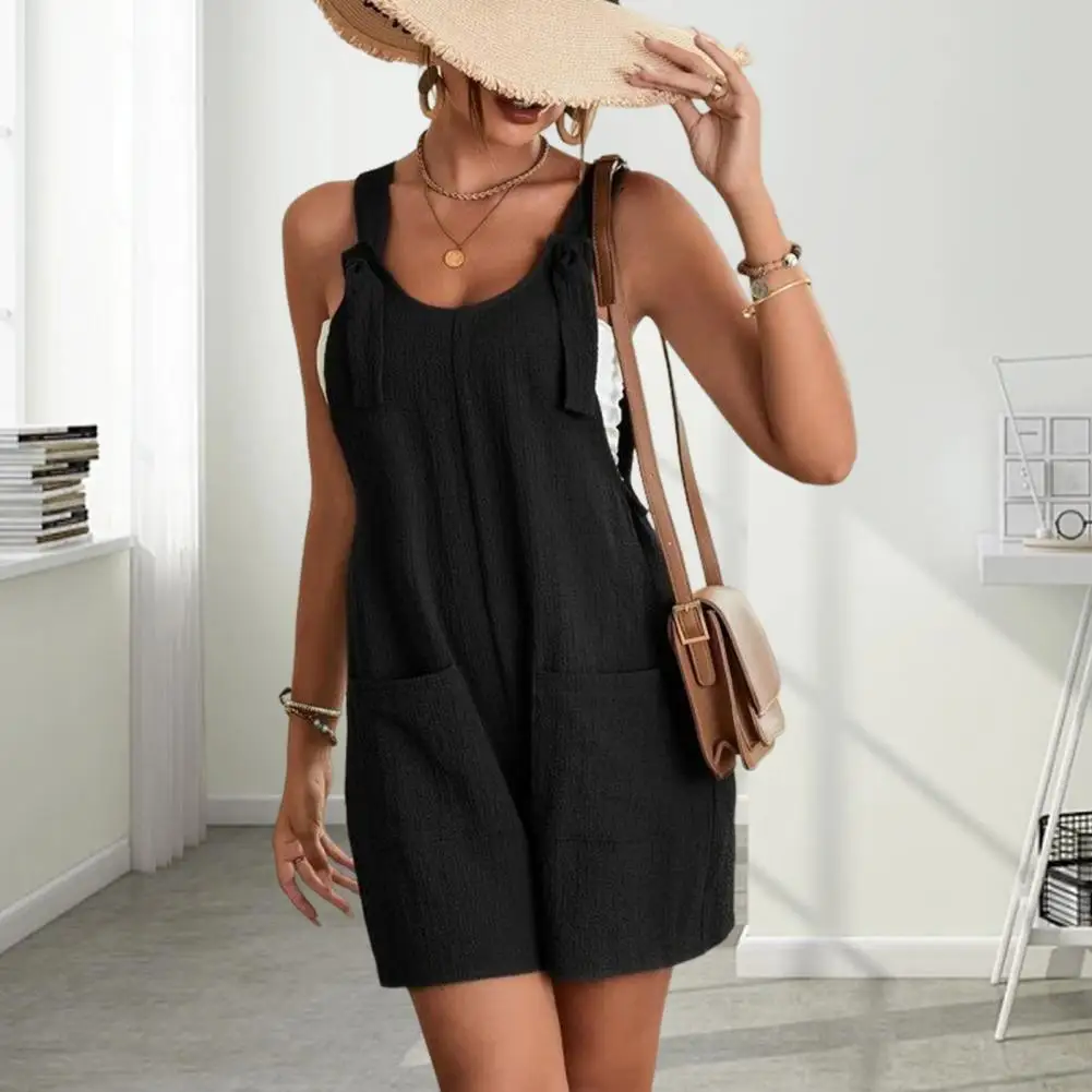 Solid Color Women Overalls Casual Summer Jumpsuit with Pockets Stylish Women's Summer Short Overalls with Pockets for Daily