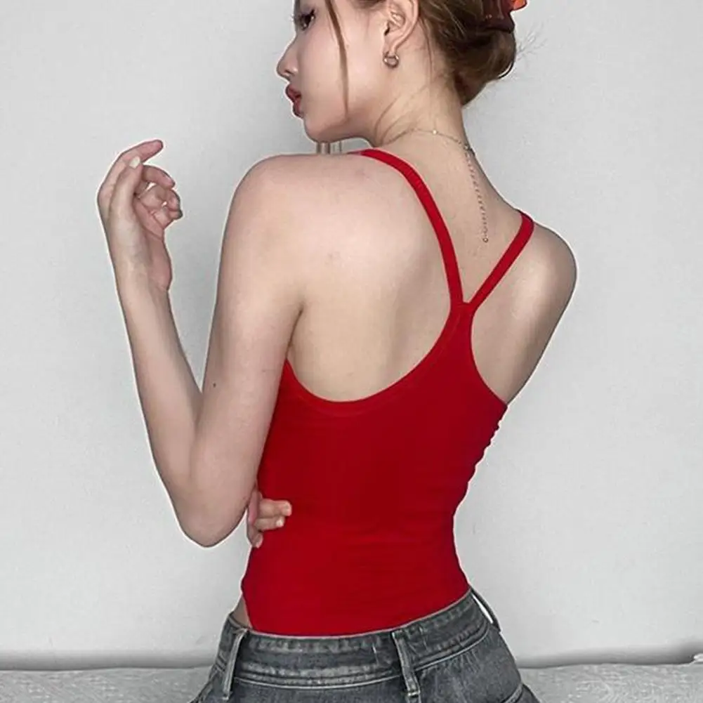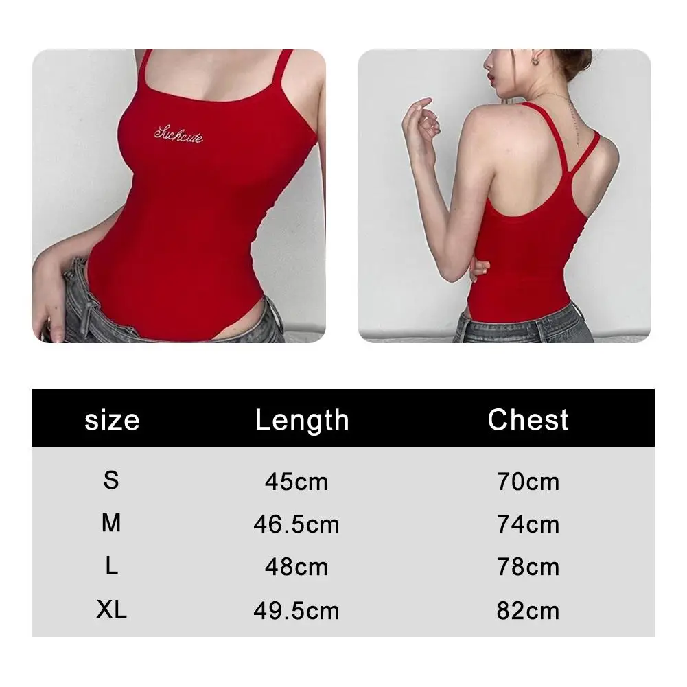 Chinese Red Embroidery Sleeveless Jumpsuit Women's Slim-fit Low-cut Halter Vest With Breathable, Sweat-absorbing Undergarments