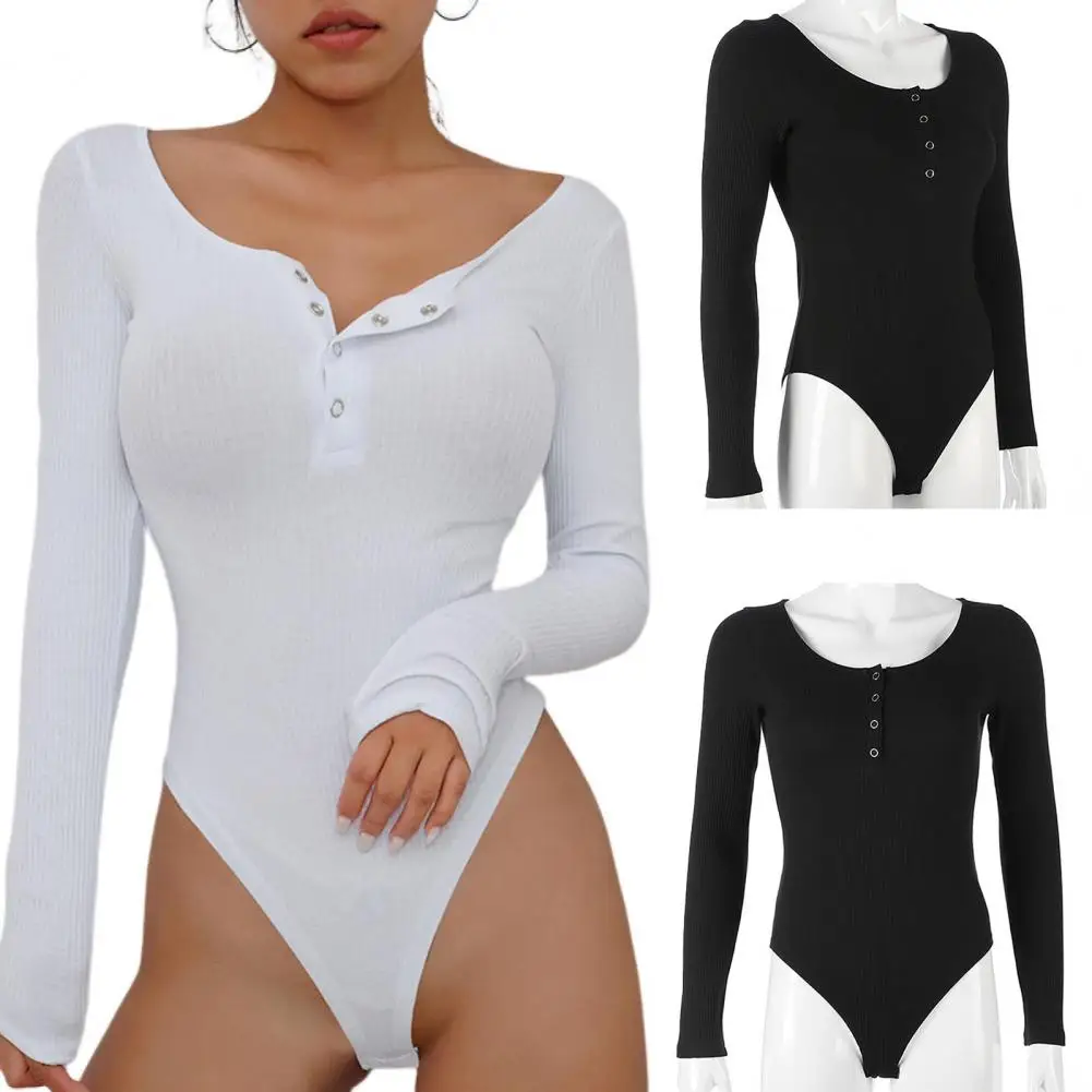 Chic Spring Playsuit Elastic Women Playsuit Solid Color Bodycon Lady Spring Bodysuit Warm