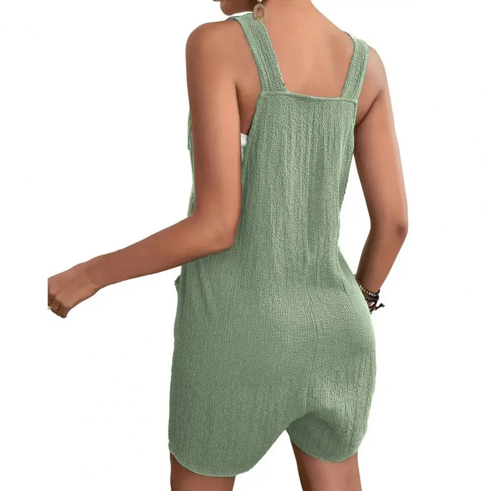 1 Pc Women's Summer Short Overalls With Pockets Sleeveless Tie Knot Strap Rompers Loose Fit Wide Leg Jumpsuit For Daily Wear