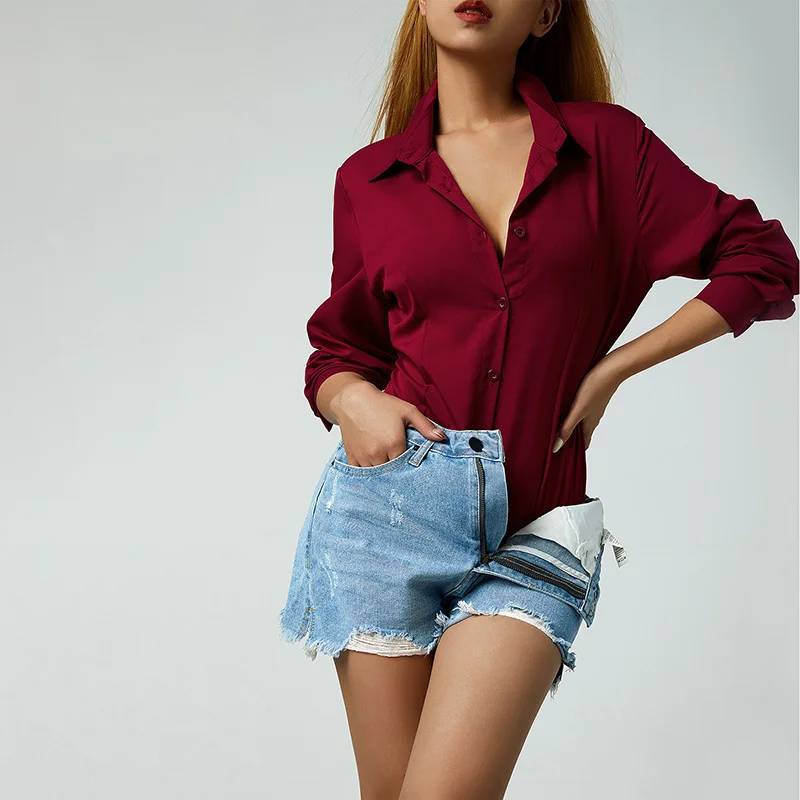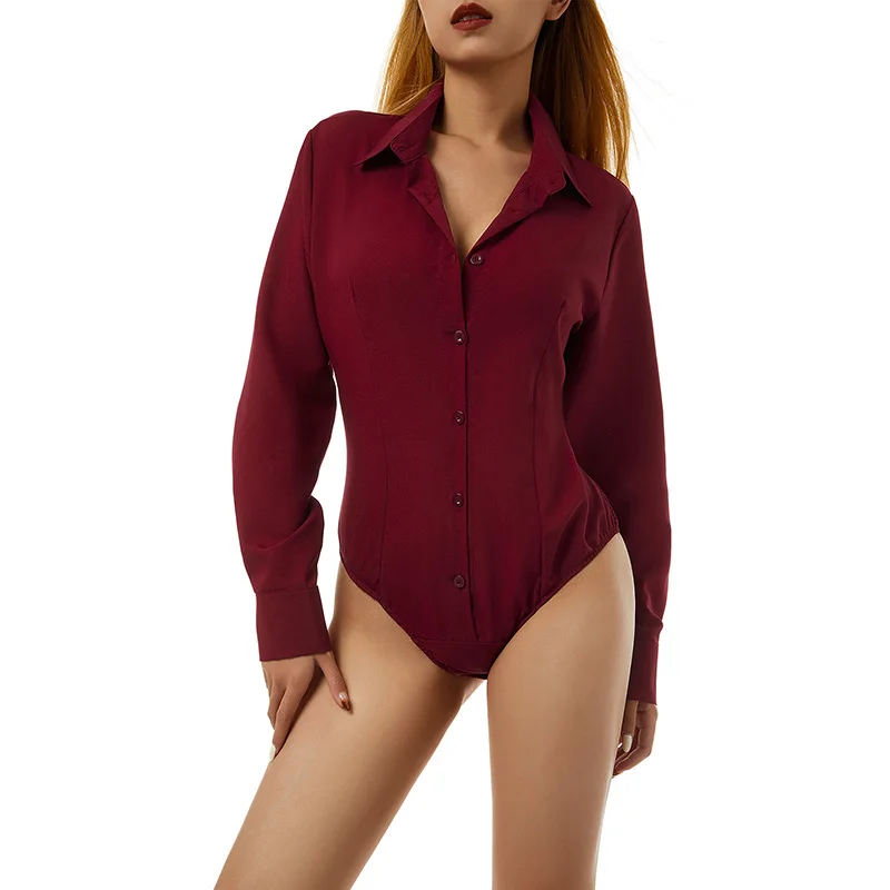 Name | Women Solid Color Button Shirts Romper Ladies Formal Shirt Long Sleeve Lapel Collar Slim Bodysuit |