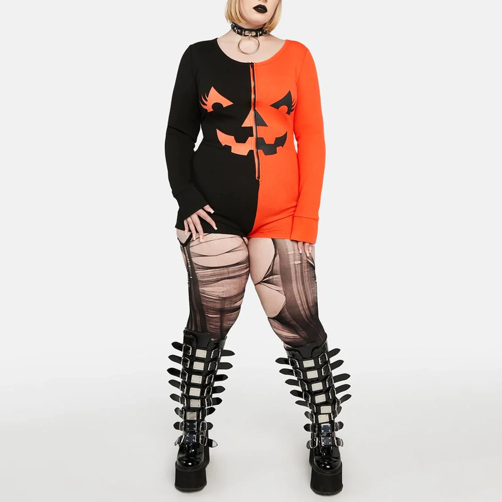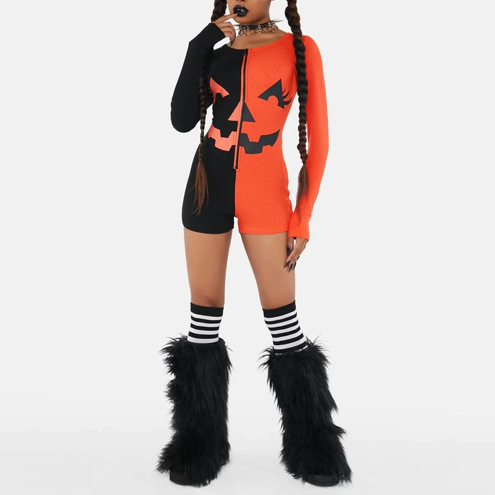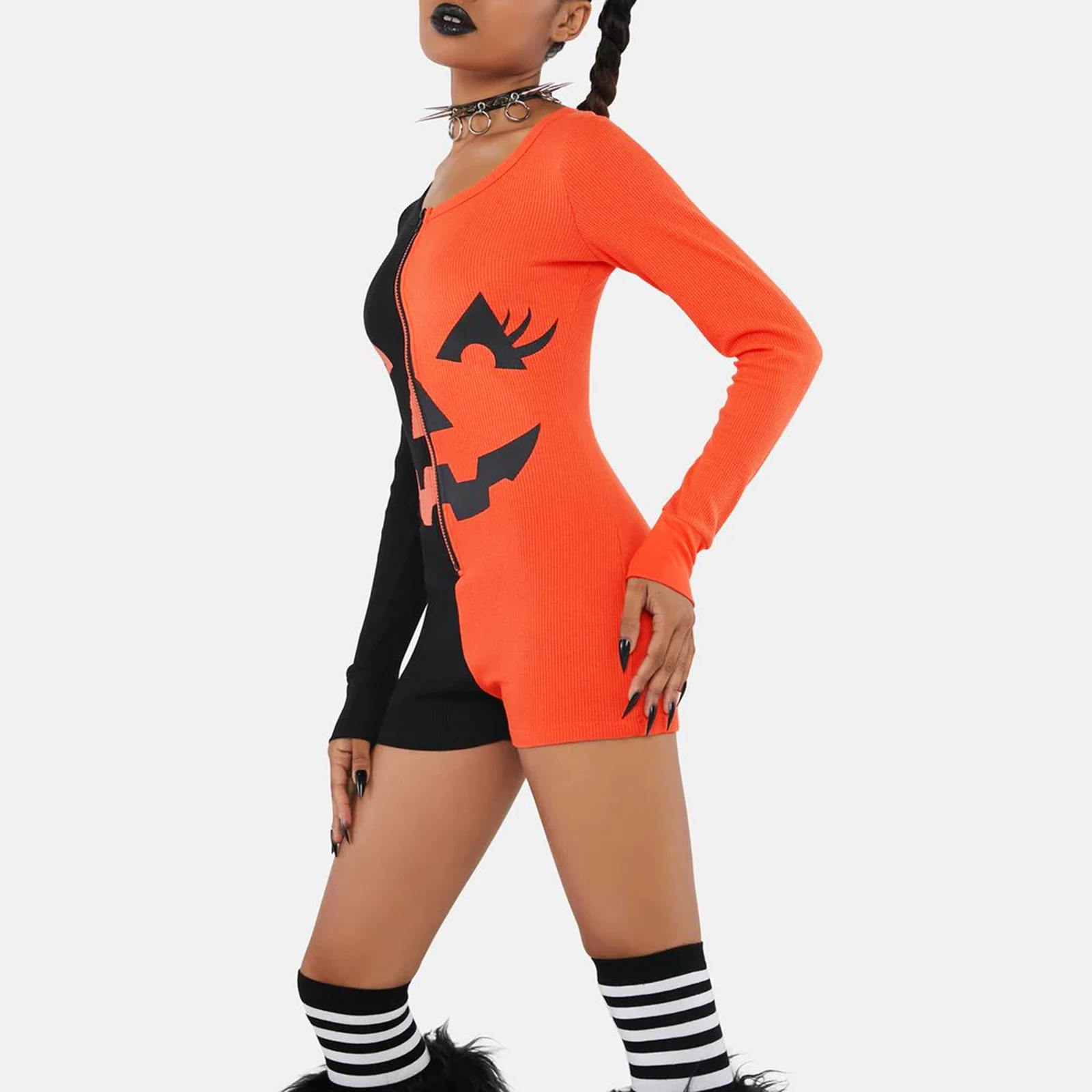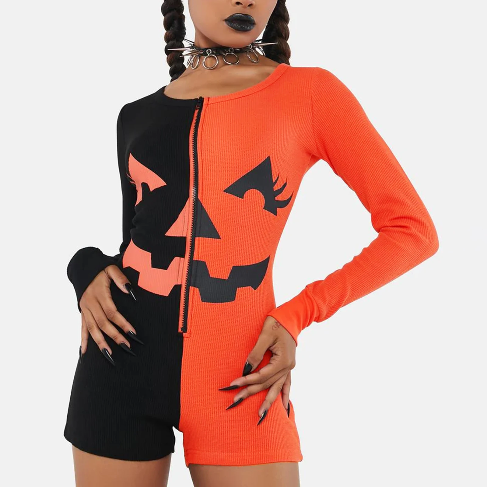 Name | Women Halloween Jumpsuit Long Sleeve Crew Neck Zipped Contrast Color Grimace Slim Fit Bodysuit Loungewear Sleepwear |