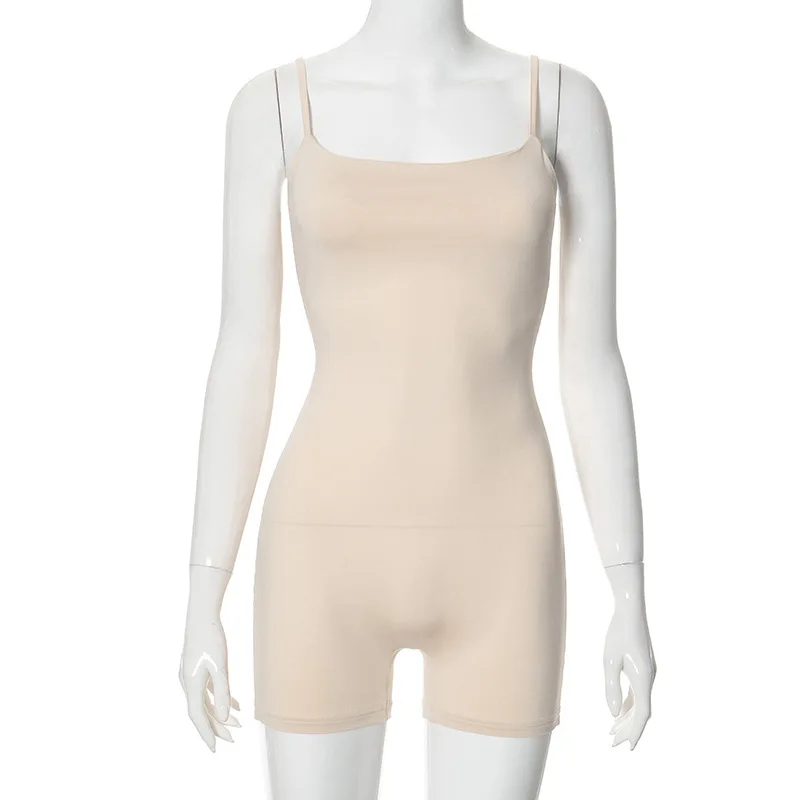 new summer 2024 sleeveless low cut cami jumpsuit one piece solid bodycon casual fashion jumpsuit for women lady