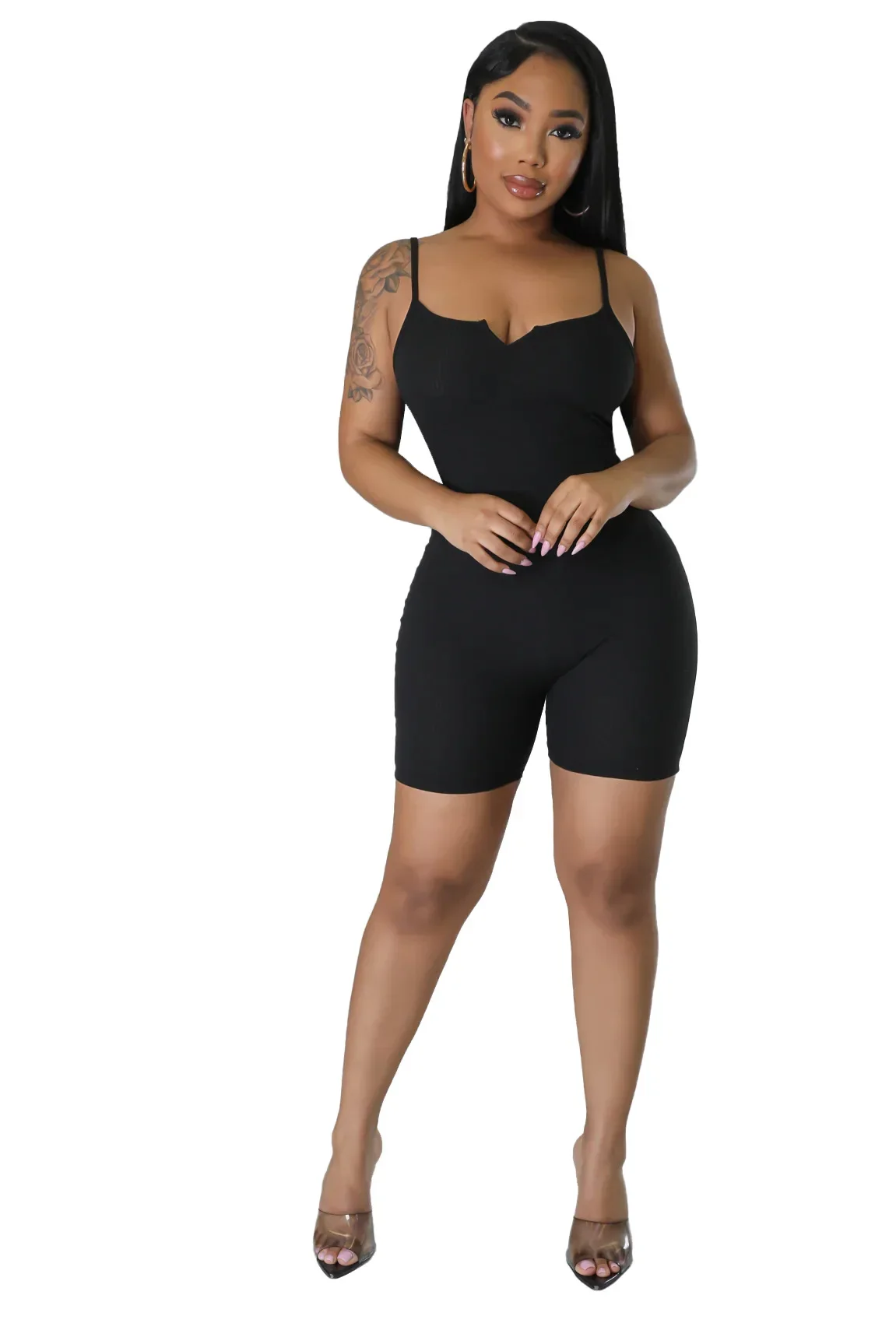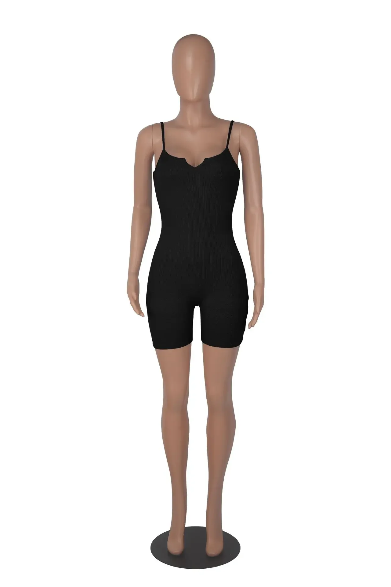 fashion rib knit solid color sleeveless causal sets V-neck rompers women jumpsuit