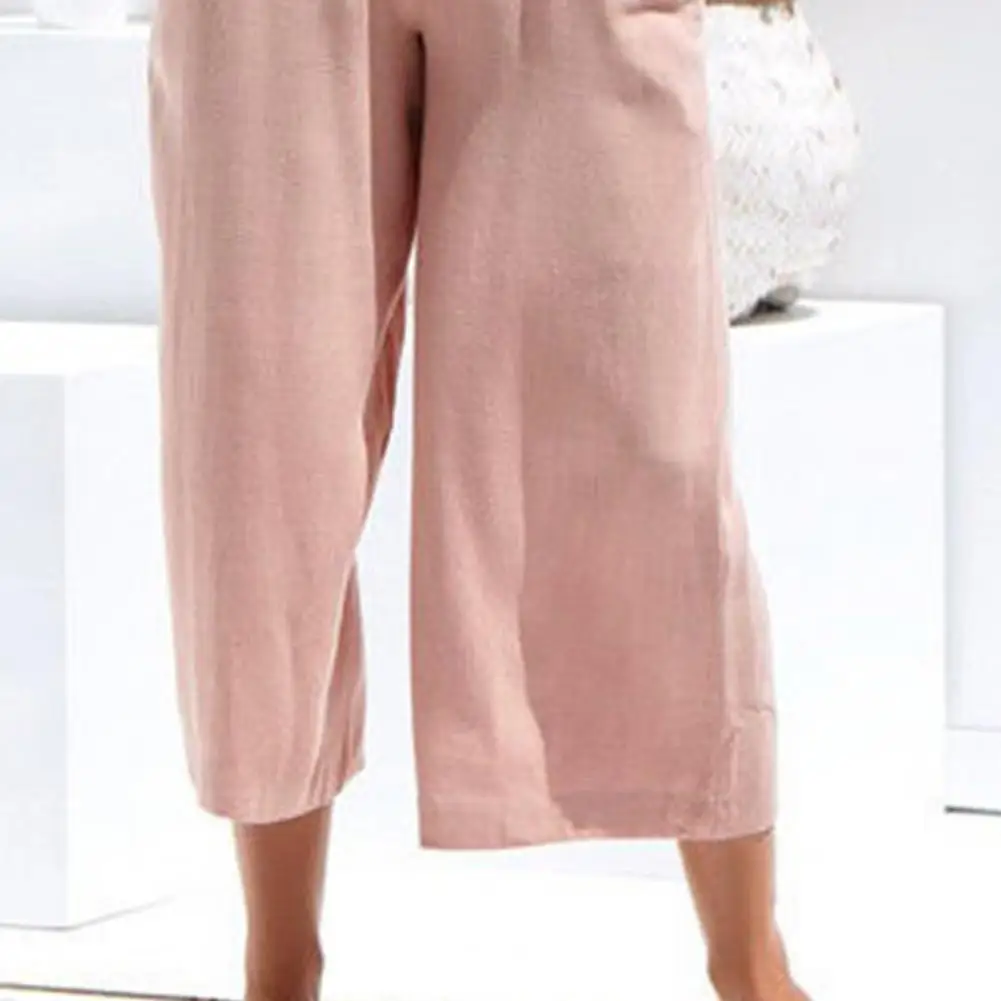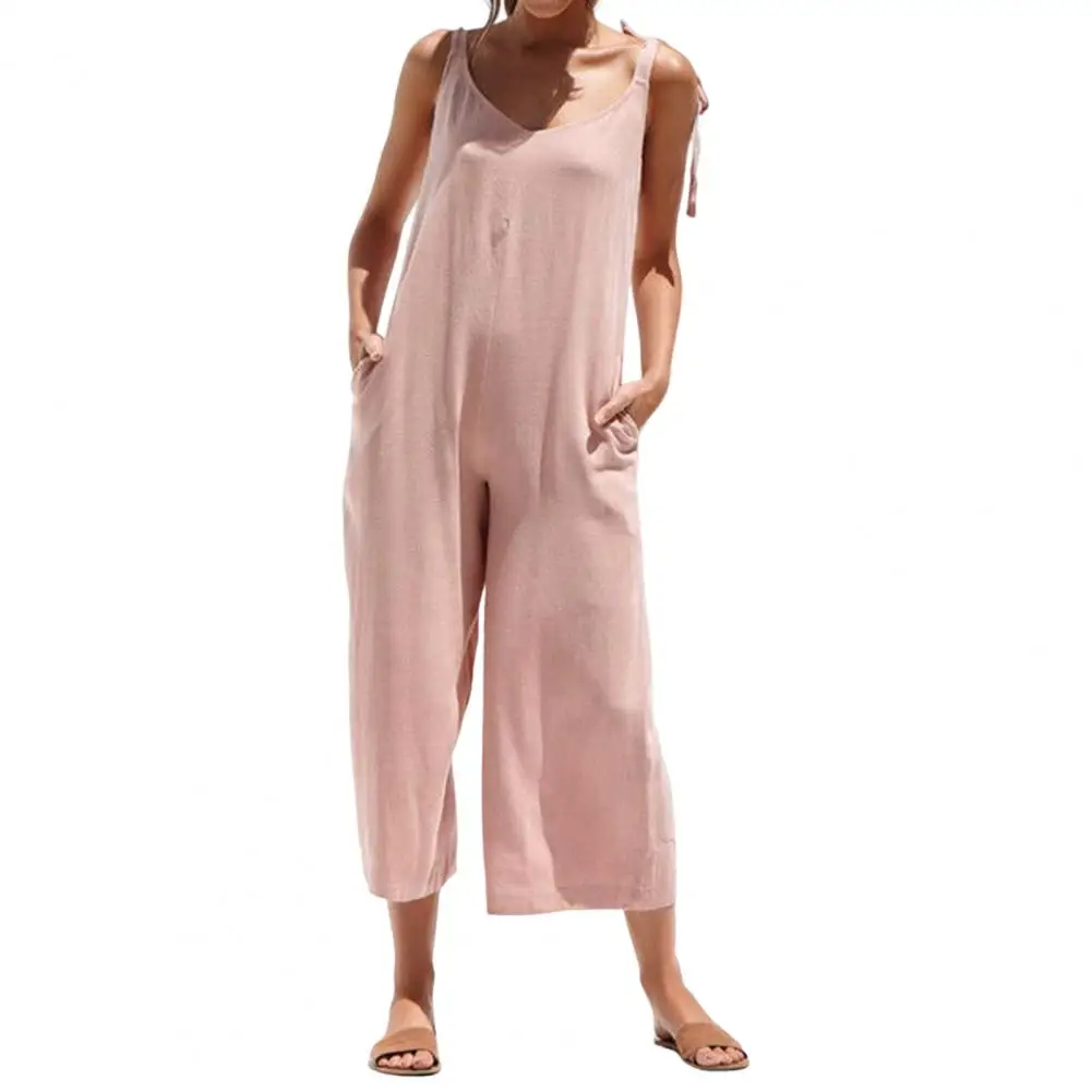 Casual Jumpsuit Women Spaghetti Strap Sleeveless Loose Wide Leg Rompers with Large Pocket Pants Summer Solid Bib Overalls Outfit