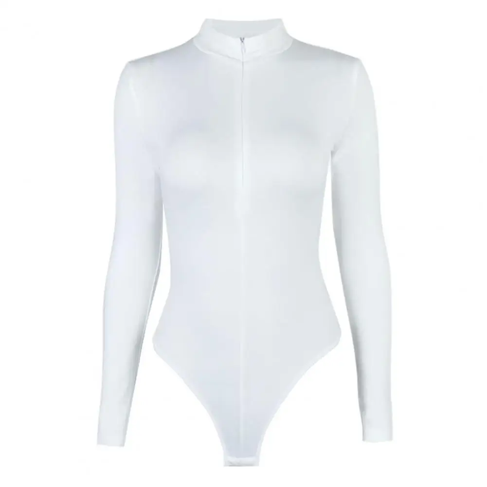 Women Bodysuit Winter Women's Fleece-lined Skinny Fit Romper Cozy Mock Neck Bodysuit with Zipper Half Placket Skinny Bottoming