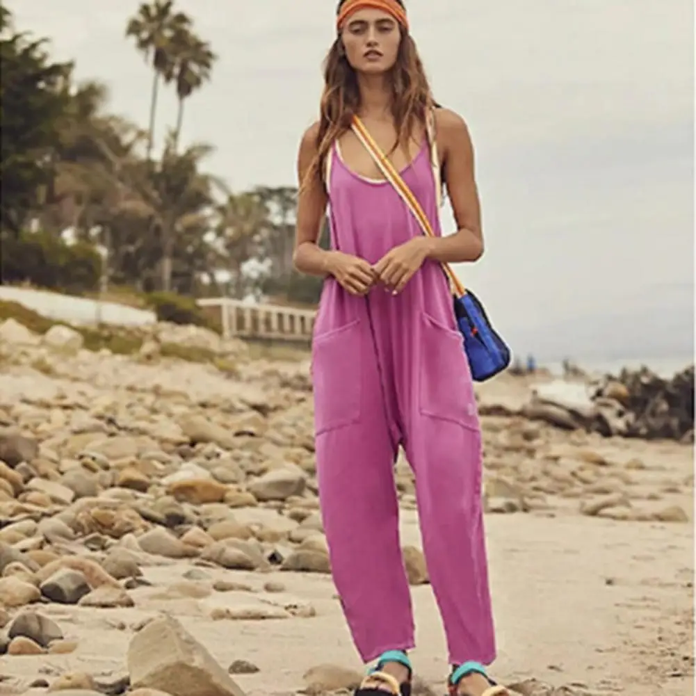 Cozy Women Overalls Solid Color Streetwear Patchwork Summer Women Romper Overalls