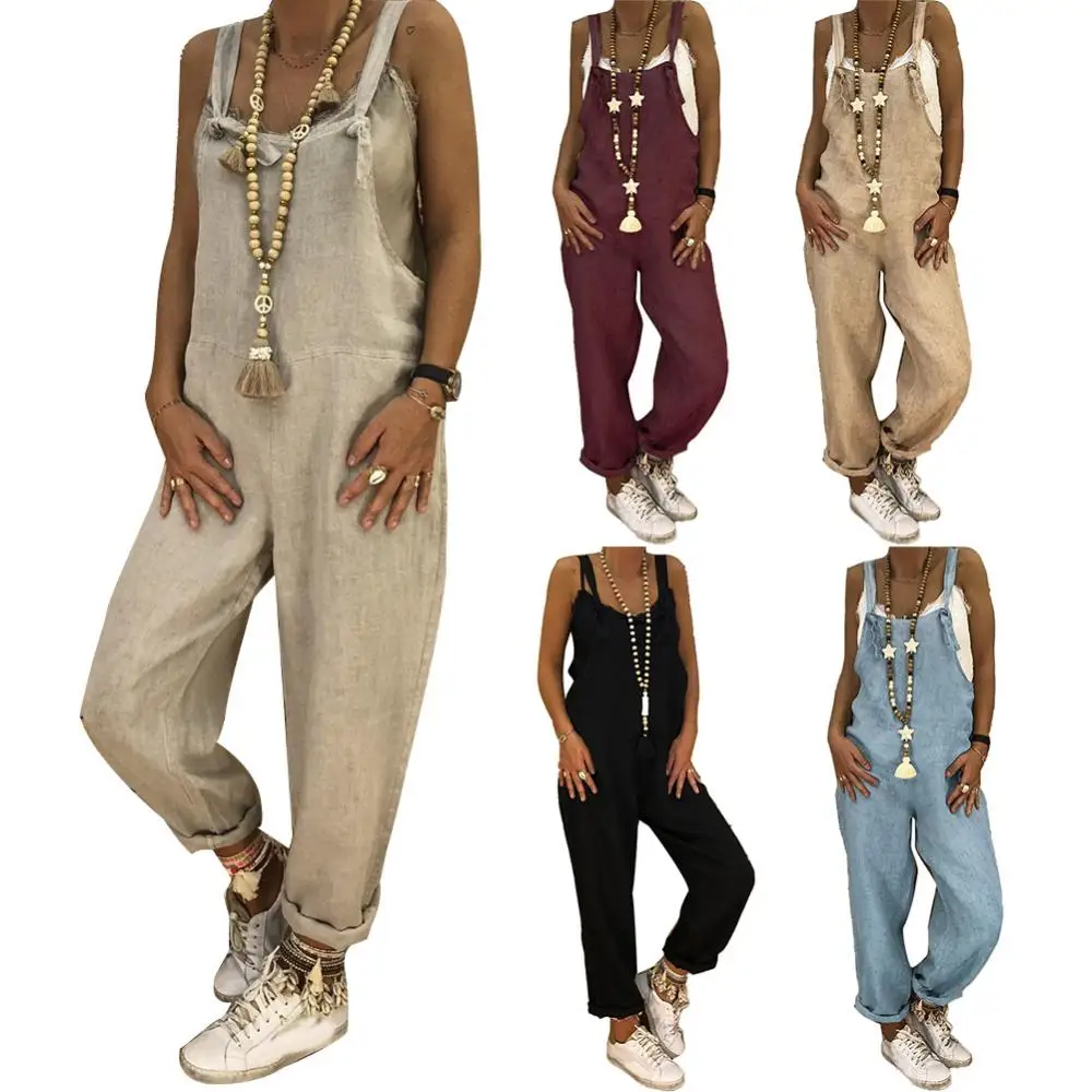 Jumpsuit Women Casual Sleeveless Overall Straps Solid Color Loose Adjustable Bib suitable for school work date