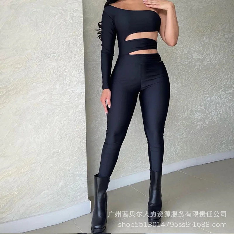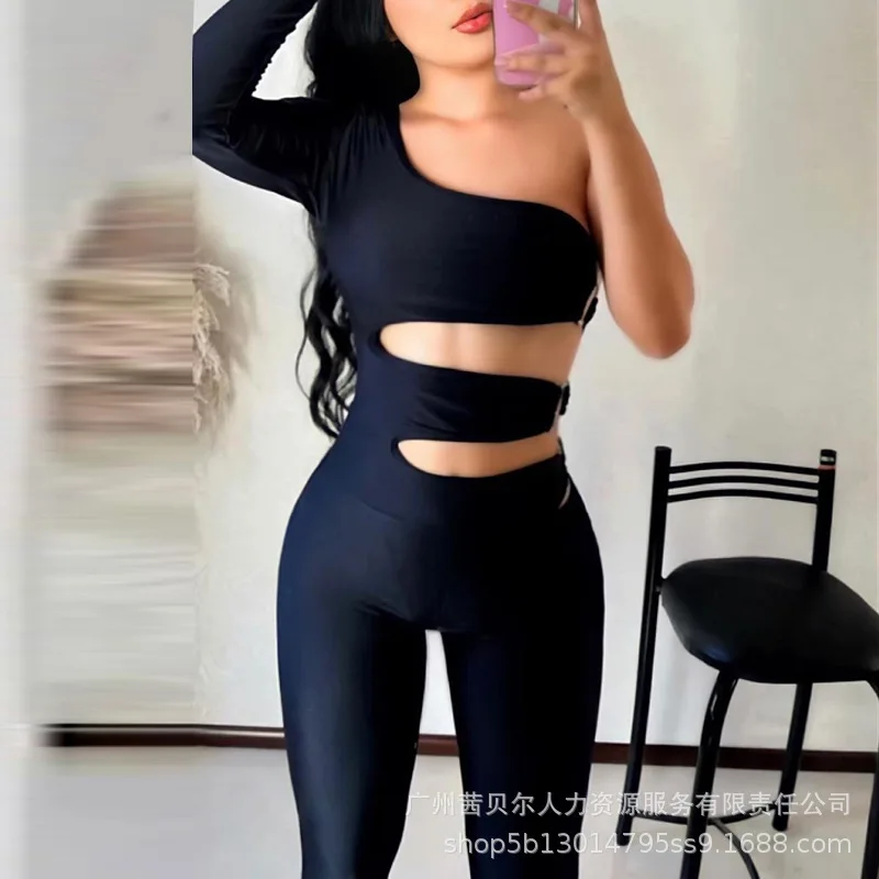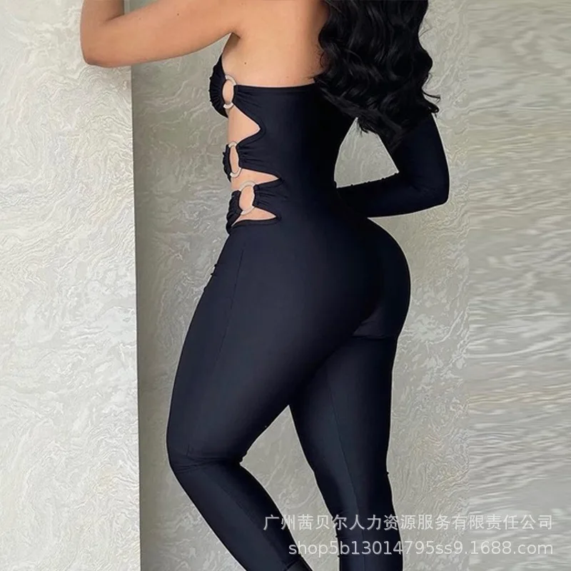 Name | 2024 Spring Summer New Women's Clothing Solid Color One-Shoulder Side Strap Tight One-Piece Trousers |