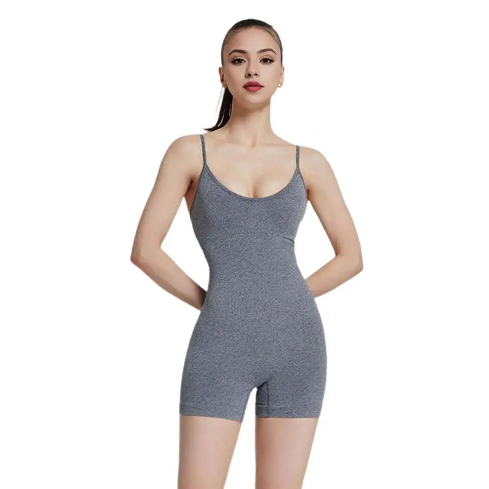 V-neck Rompers Sleek Women's Yoga Romper with Spaghetti Straps Butt-lifted Design for Pilates Jogging Exercise for Summer
