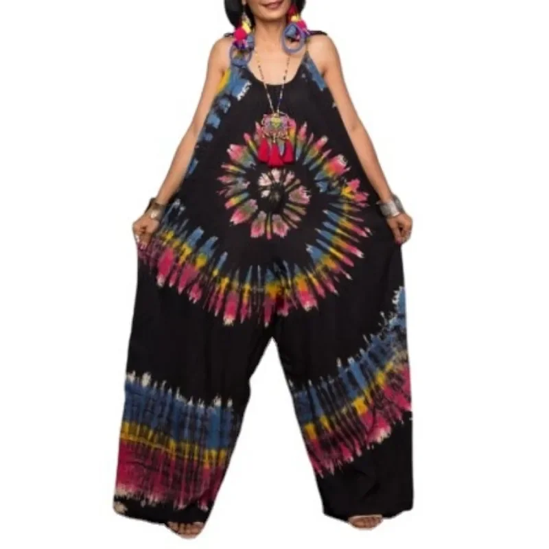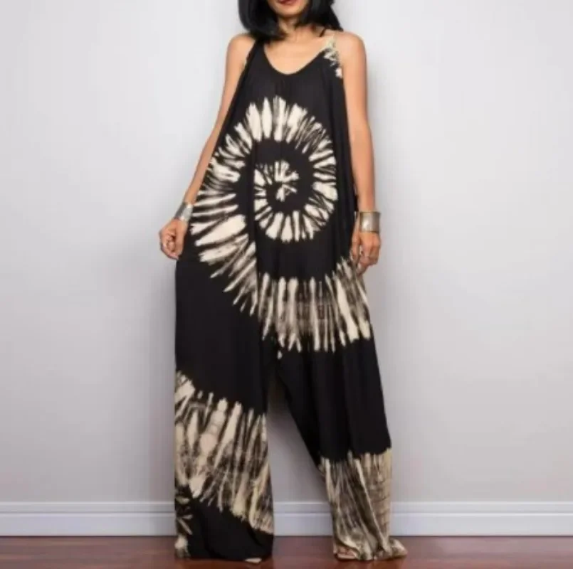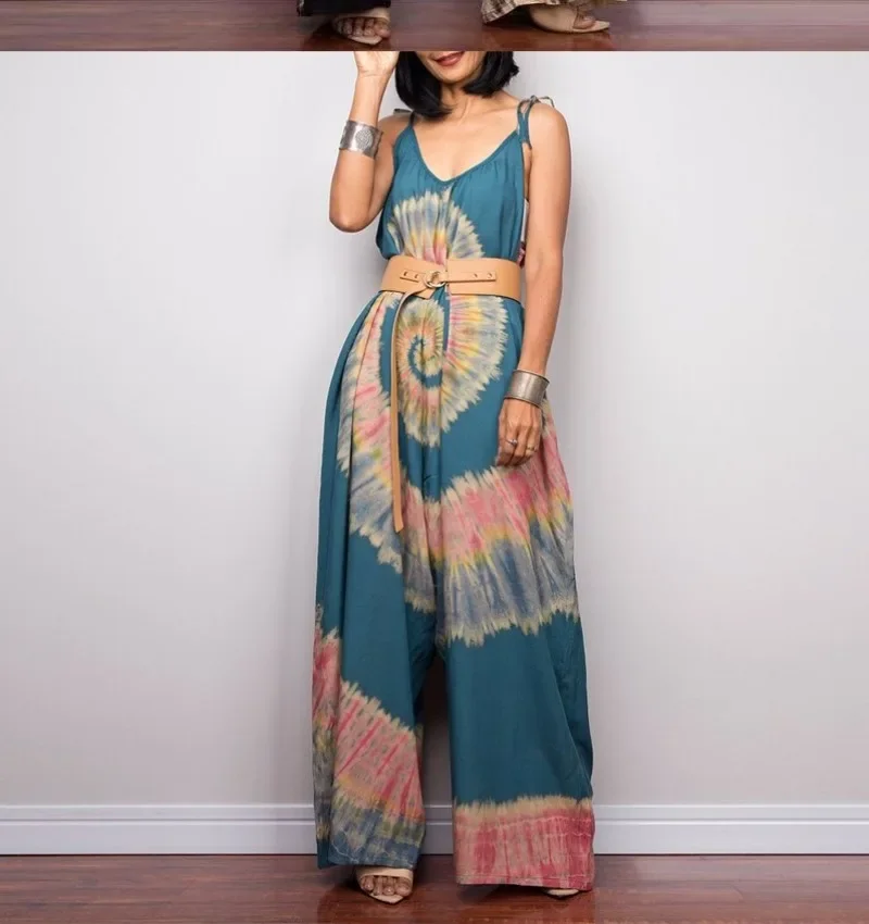 New Fashion Long Goddess Print Sleeveless Loose Jumpsuit for Women