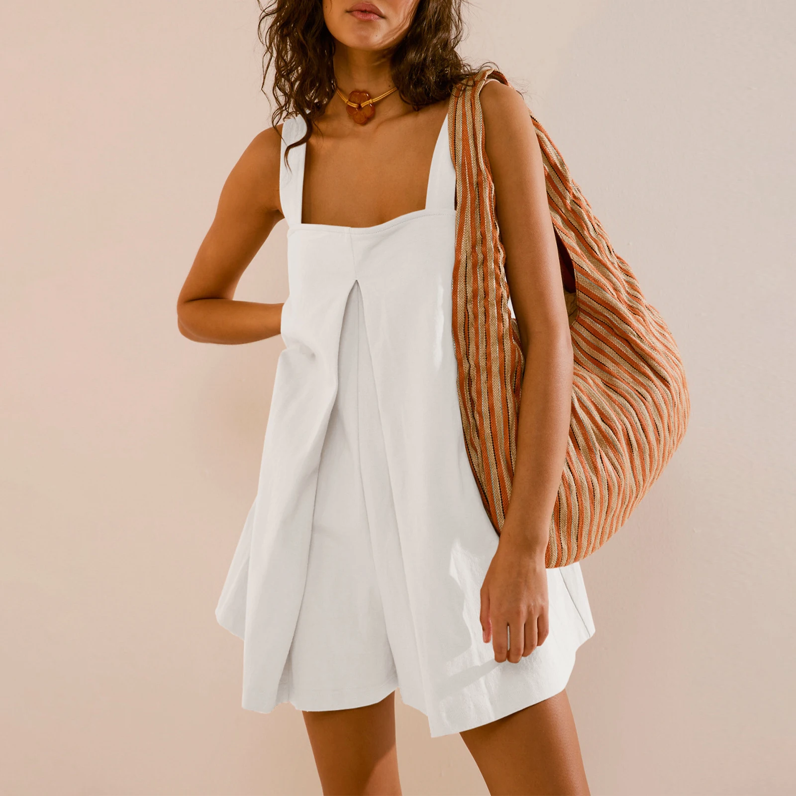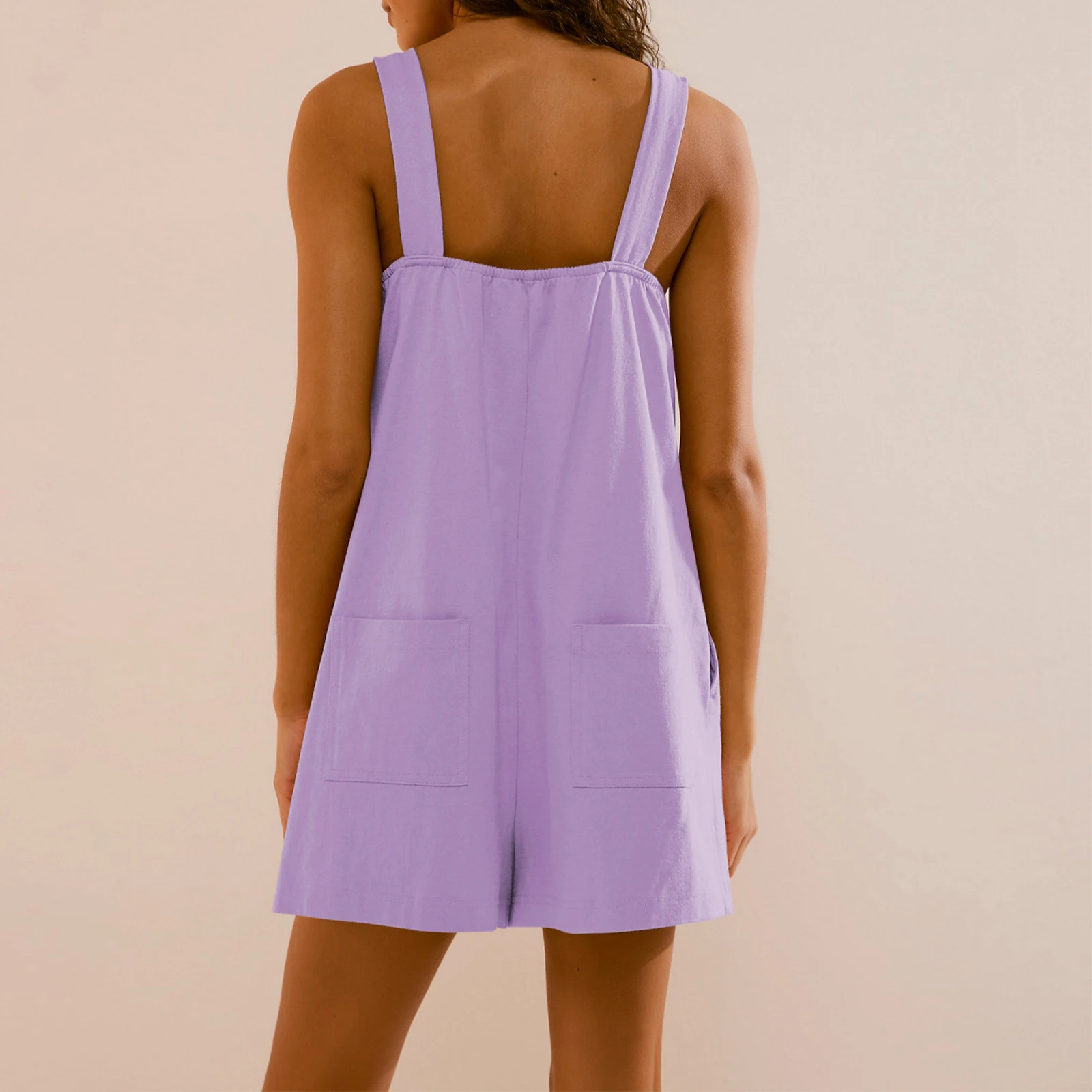 Women Summer Casual Rompers Overalls Solid Color Sleeveless Backless Shorts Jumpsuits Playsuits Streetwear with Pockets