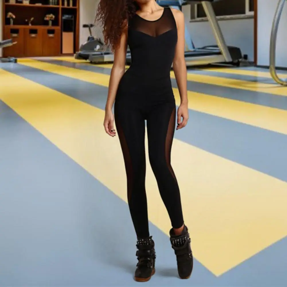 Overalls For Women Clothing 2022 Sportswear Mesh Patchwork Sexy Hollow Out See Through Jumpsuit for Gym